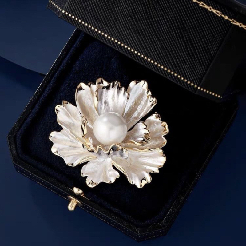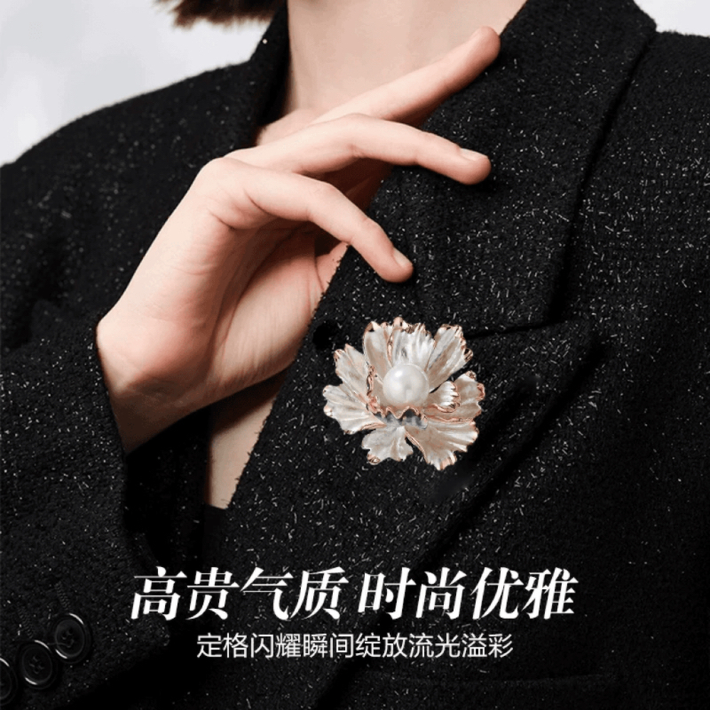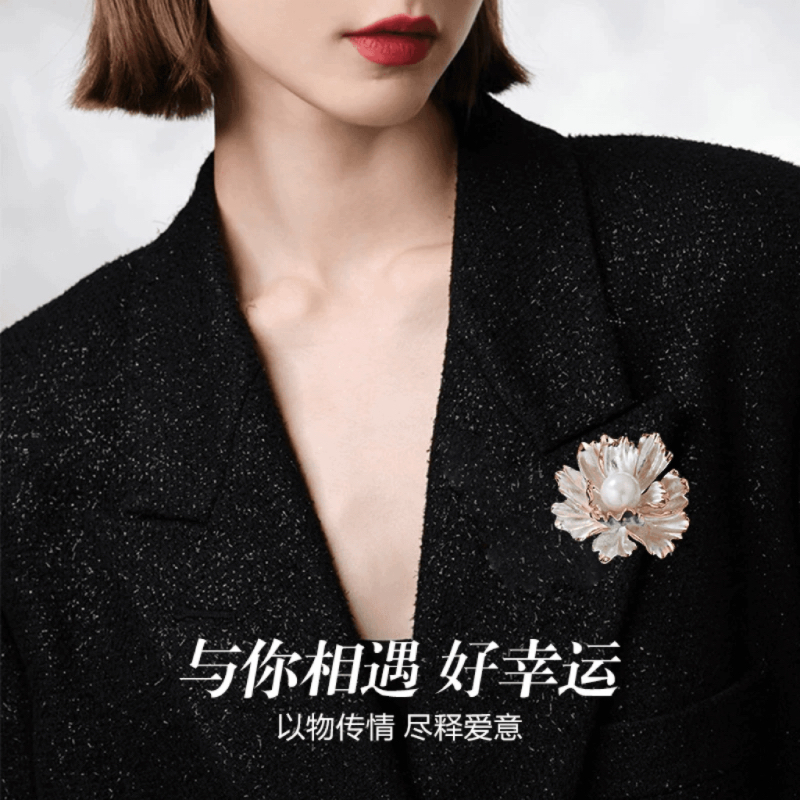 诸暨珍珠白色牡丹花胸针精致高级感轻奢胸花小香风七夕礼物淡水