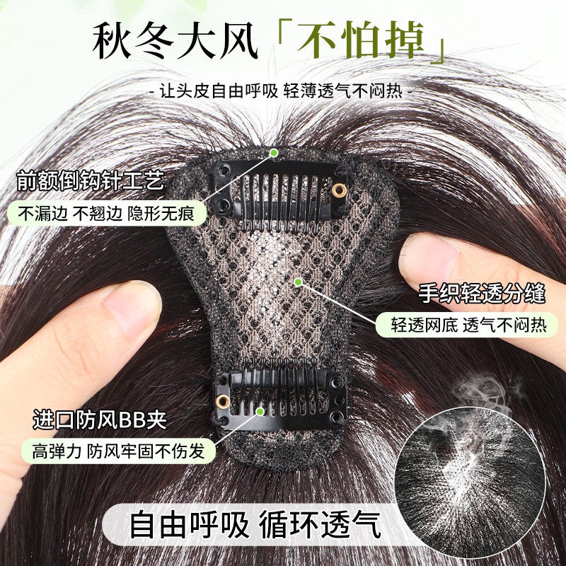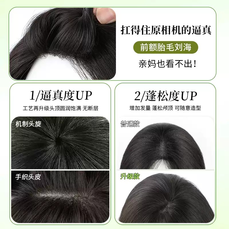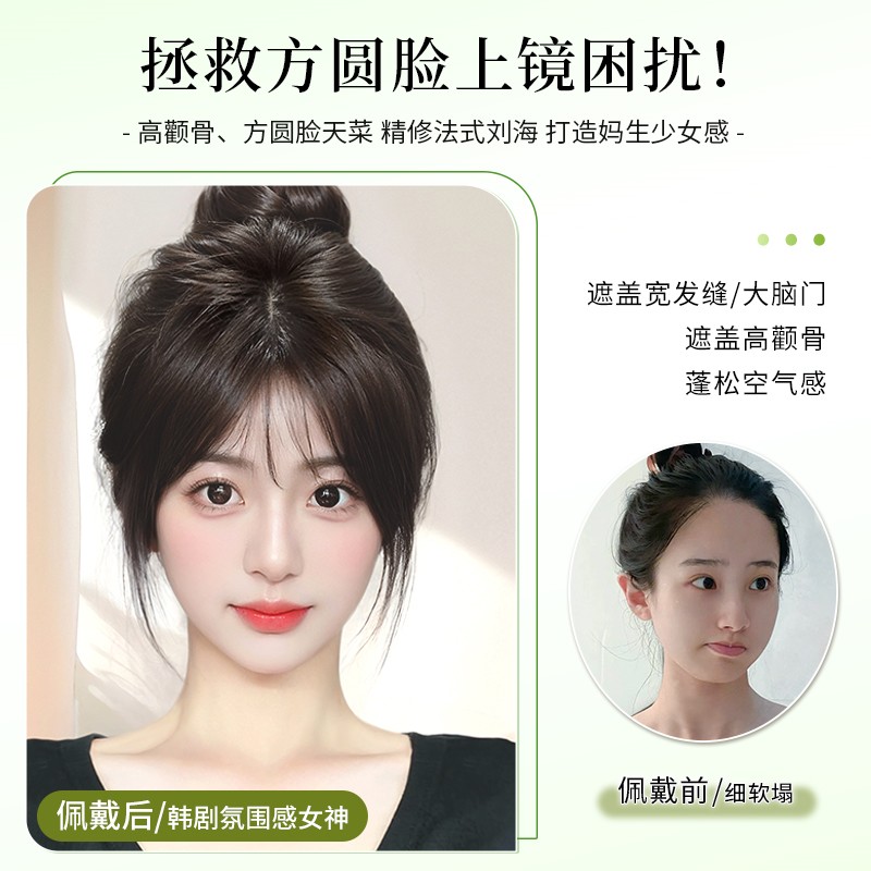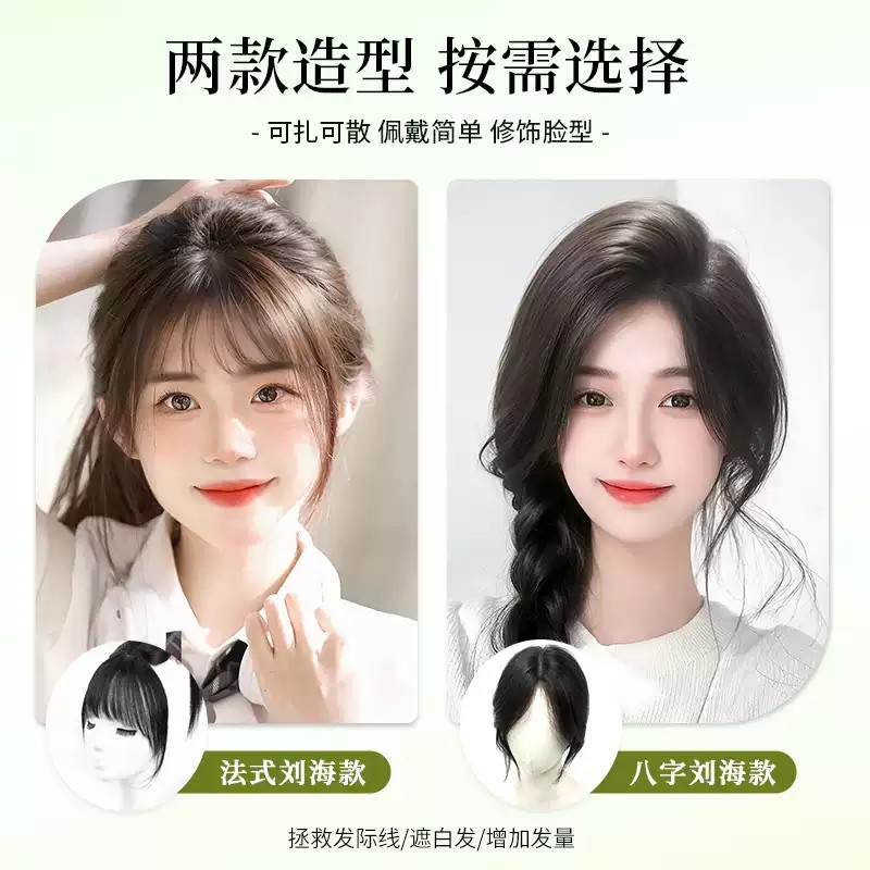刘海假发女自然前额头顶补发假发片夏轻薄真发遮白发3d法式假刘海