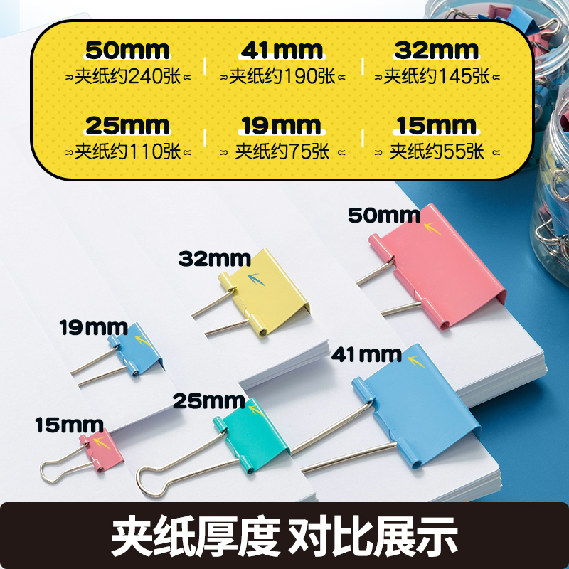 晨光长尾夹混合装彩色文件夹子办公用品文具燕尾夹雁尾夹凤尾夹票夹大号小号多功能试卷混装50mm不锈钢小夹子