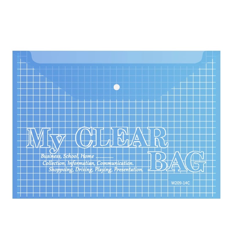 加厚格纹a4透明文件袋按扣塑料资料袋学生用科目分类作业袋纽扣袋钮扣档案收纳袋产检资料袋办公用品
