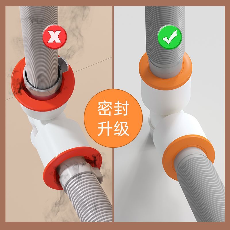 厨房下水道排水管二合一洗衣机下水管三头通下水道防臭防漏接头面