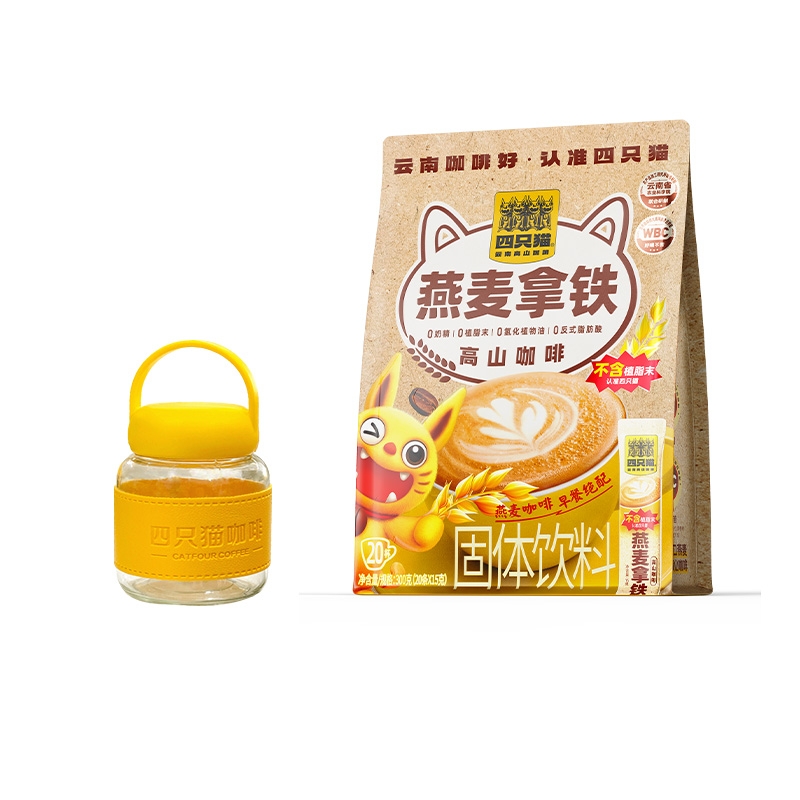 四只猫燕麦拿铁咖啡 0植脂末速溶咖啡上学上班早餐搭档 犯困提神