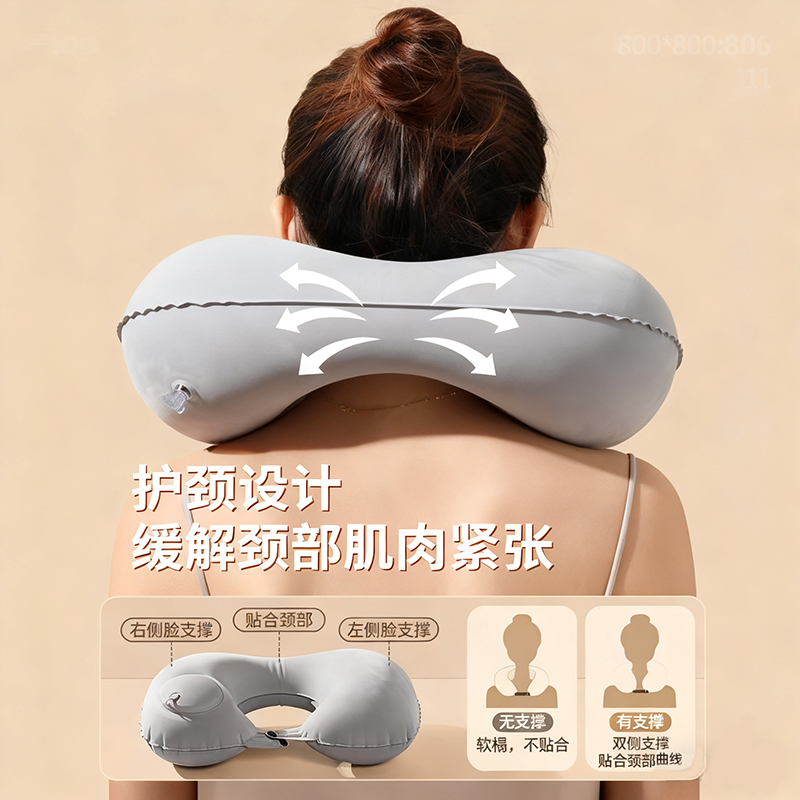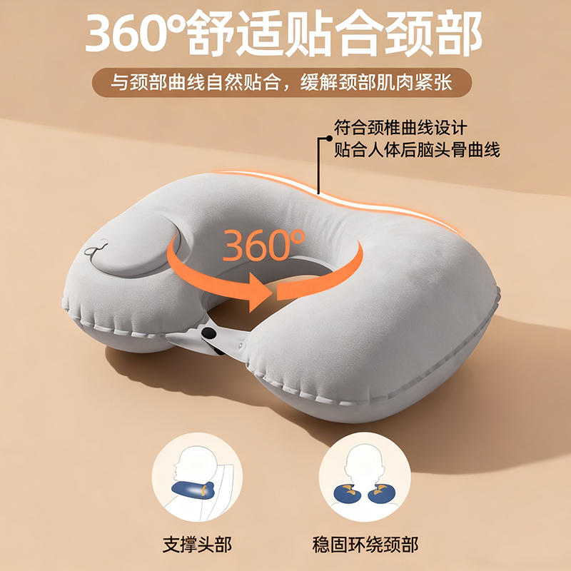 充气u型枕按压睡觉颈枕冰丝凉感旅行坐飞机神器护颈枕便携折叠