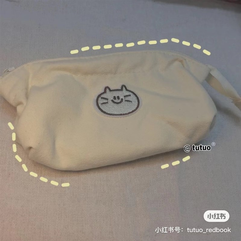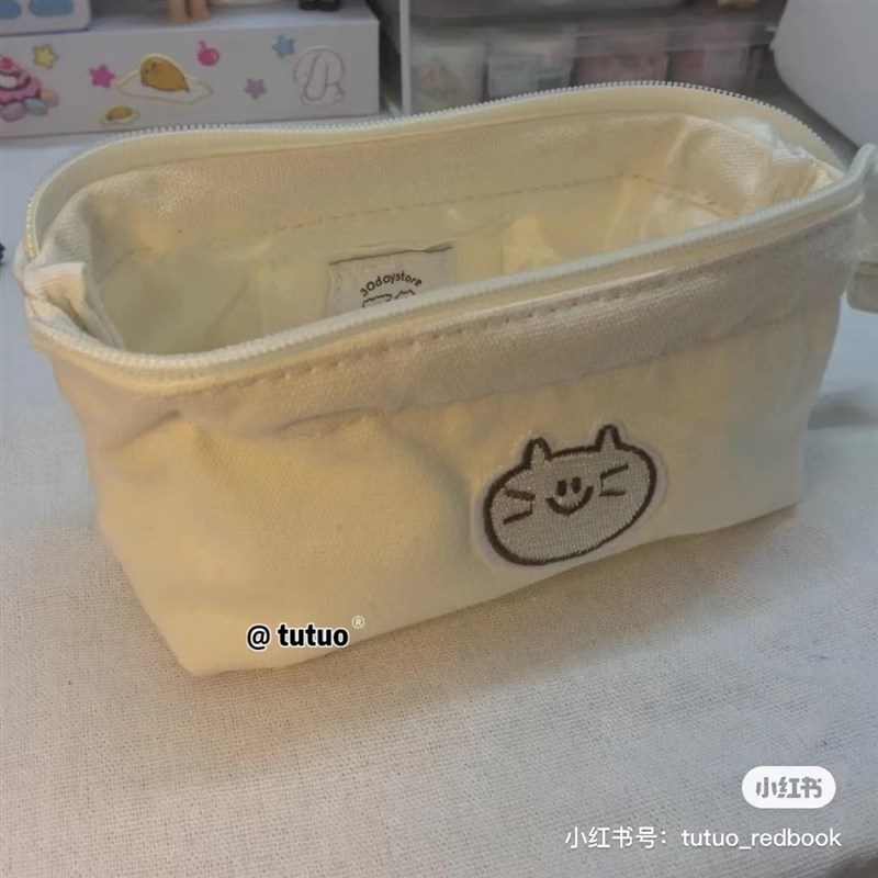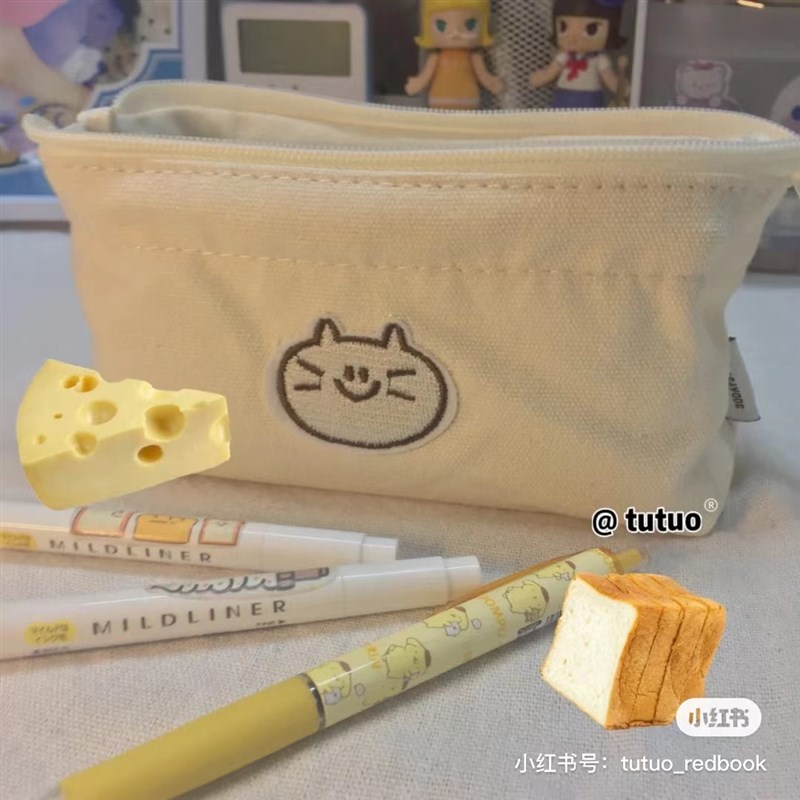 日系小众猫咪笔袋简约高颜值大容量初高中可爱帆布立体文具收纳袋