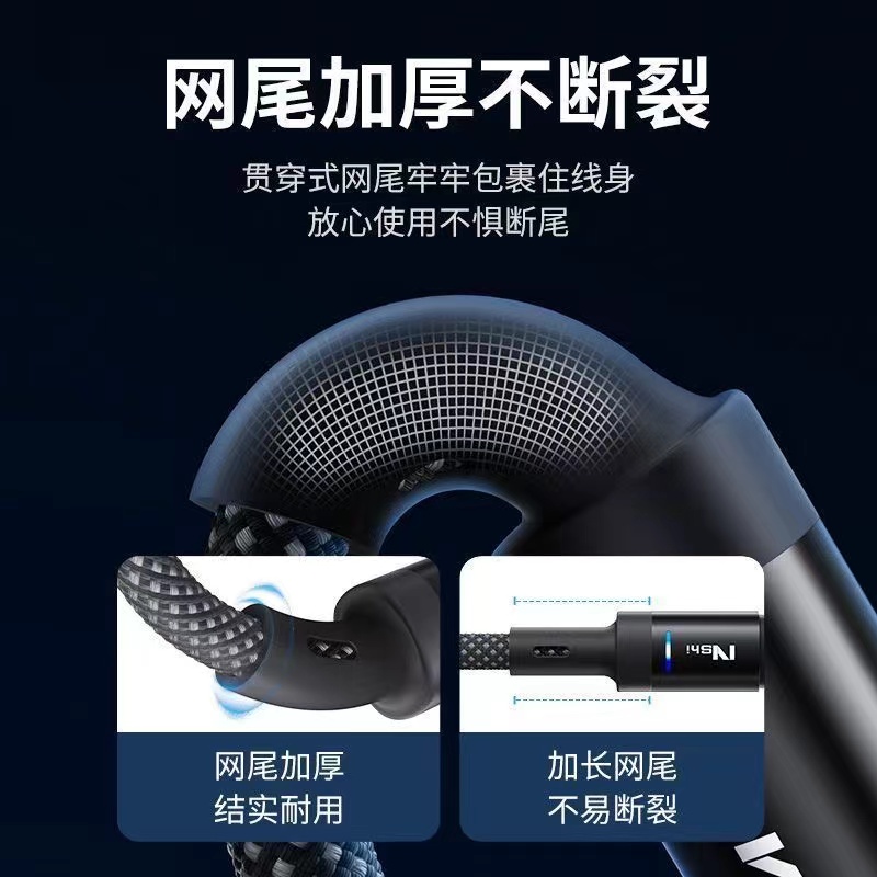 100W编织带灯数据线10A超级快充双Type-C适用苹果15/16华为小米荣耀OPPOvivo手机iPad平板笔记本车载快充电线