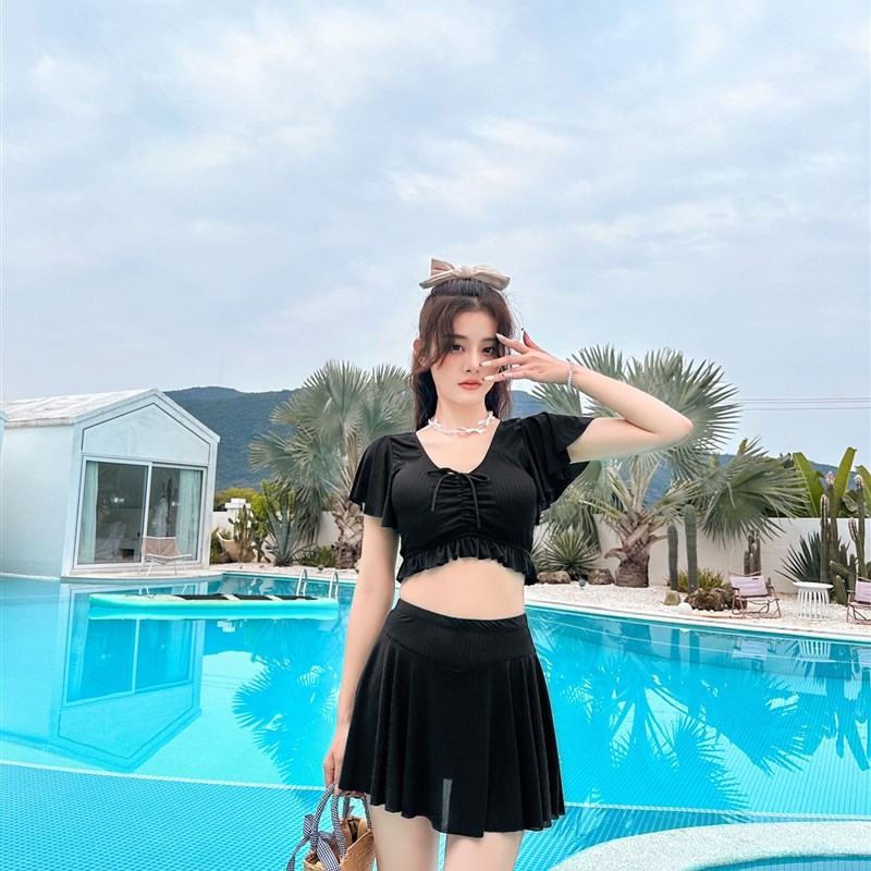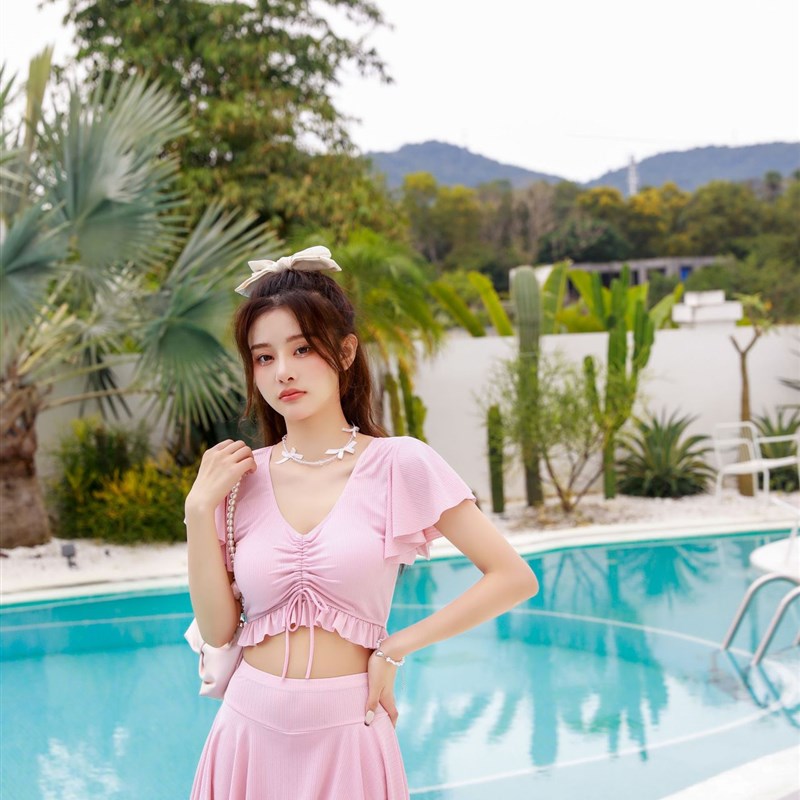 新款游泳衣女分体韩版小胸聚拢高腰遮肚显瘦ins风仙女范温泉泳衣