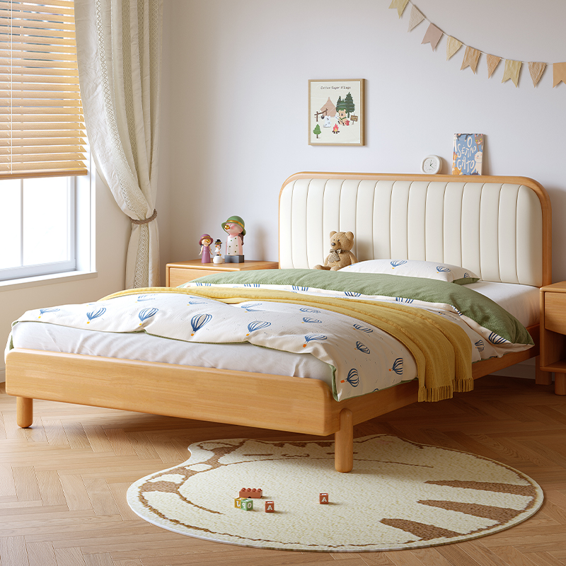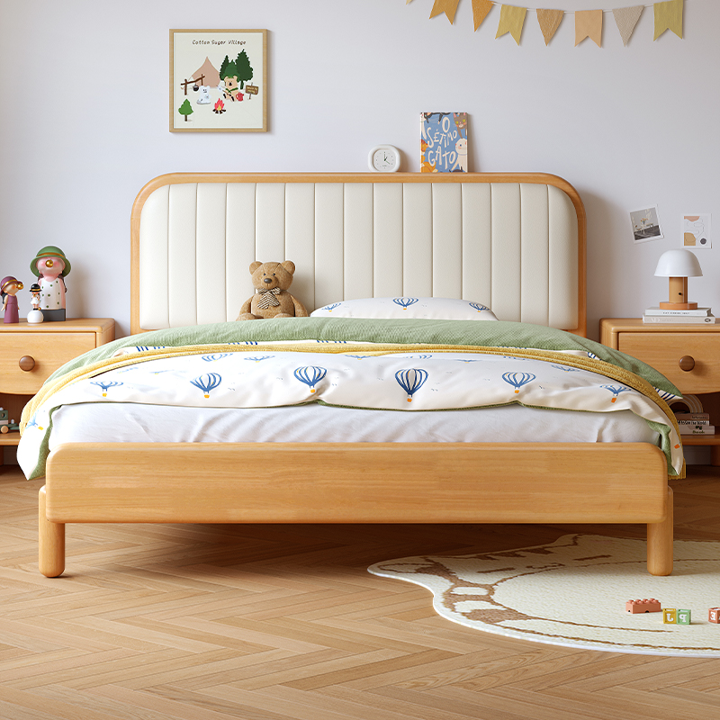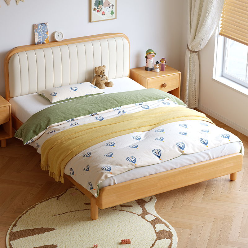 全榉木儿童床卧室男孩单人床小户型女孩公主床实木床带护栏软包床
