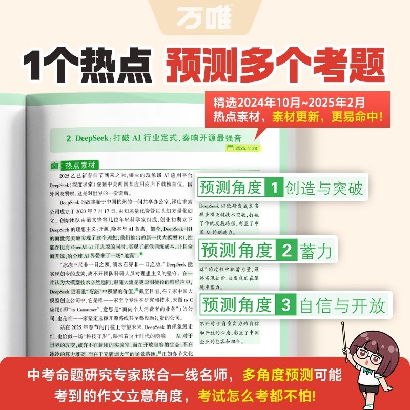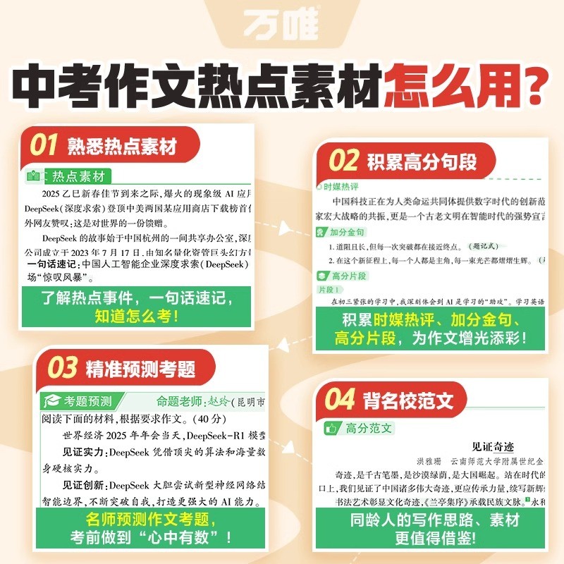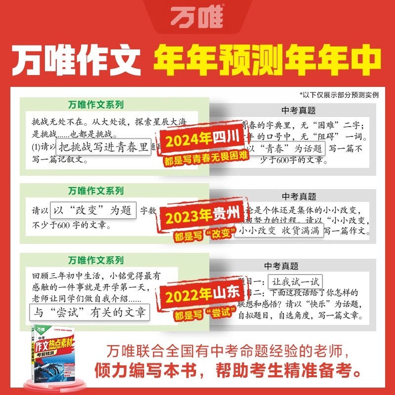 万唯中考作文热点素材考前预测中考语文满分作文写作模版初一初二初三初中美文金句摘抄时政热点积累高分范文解读中考押题作文指南