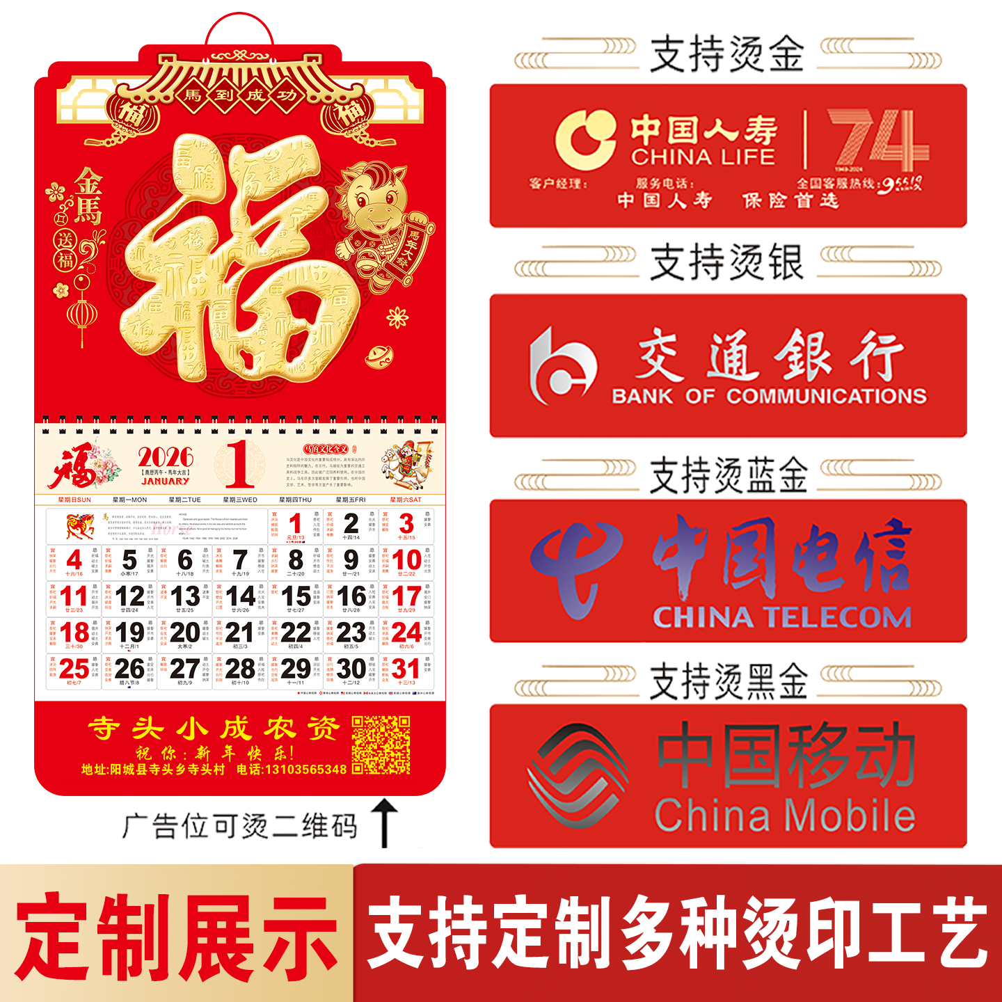 加厚2026年新款挂历定制马年高档日历福字家用挂墙月历挂式老黄历