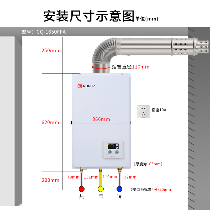 NORITZ/能率 GQ-1650FFA水量伺服器16升平衡式燃气热水器防冻室内