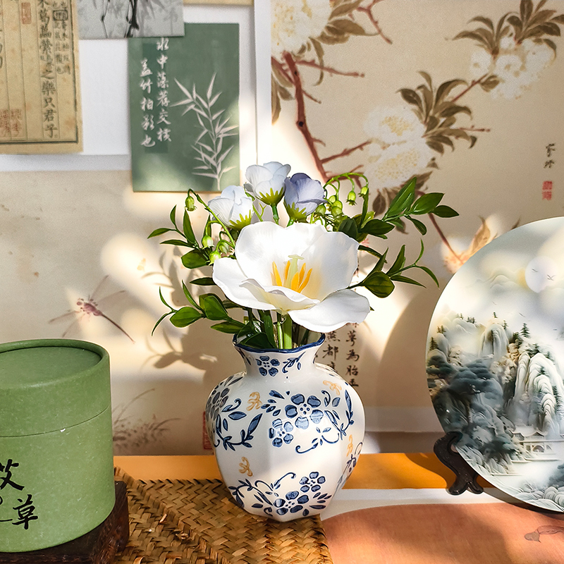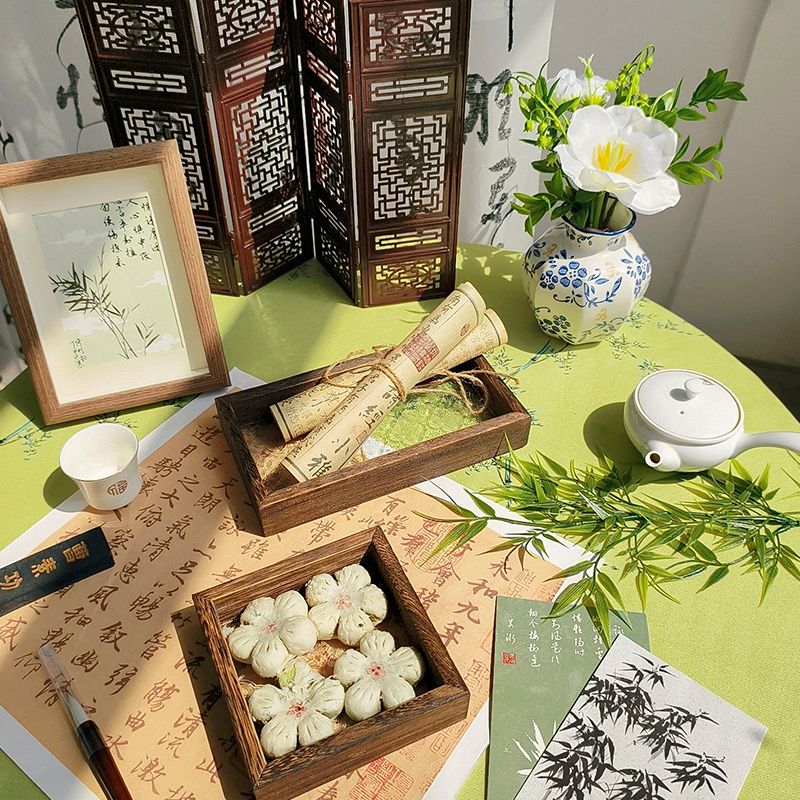 拍照氛围道具中国风小物件古风美食拍摄场景布置青花瓷仿真花屏风装饰摆件新中式直播间造景书法摄影背景布