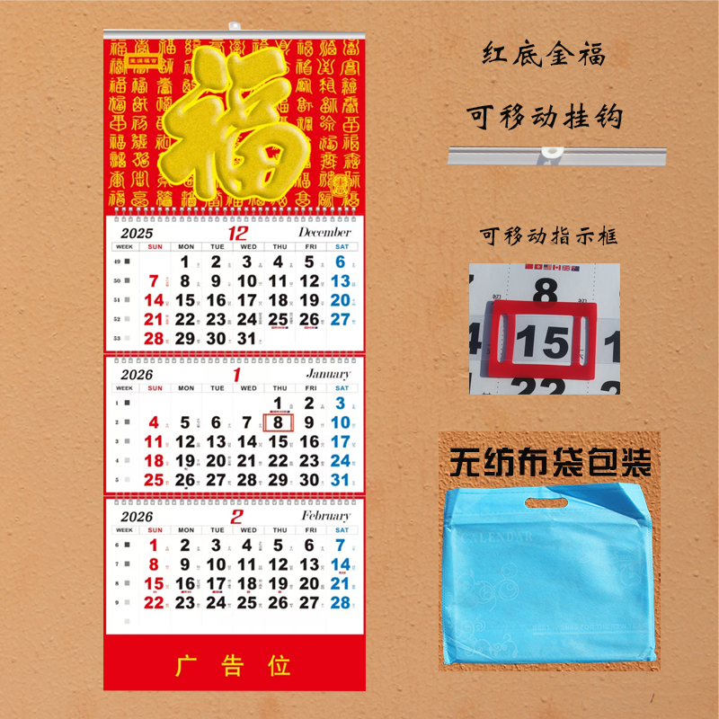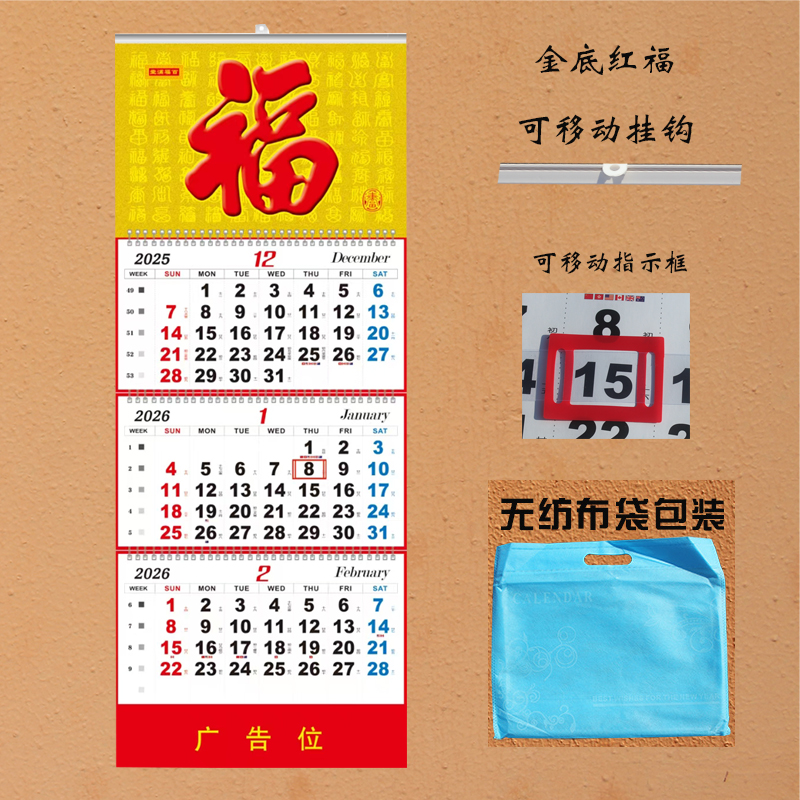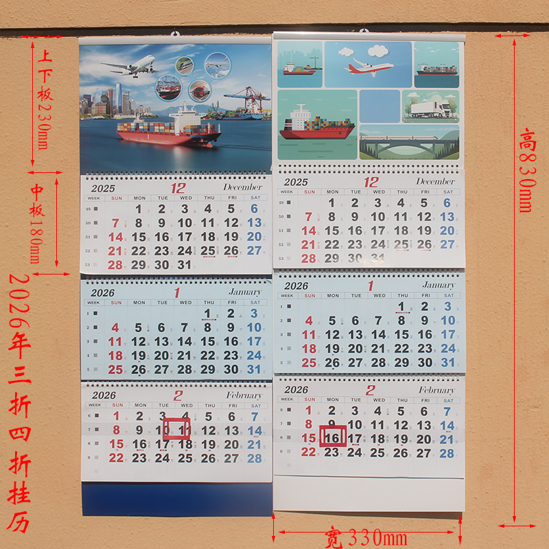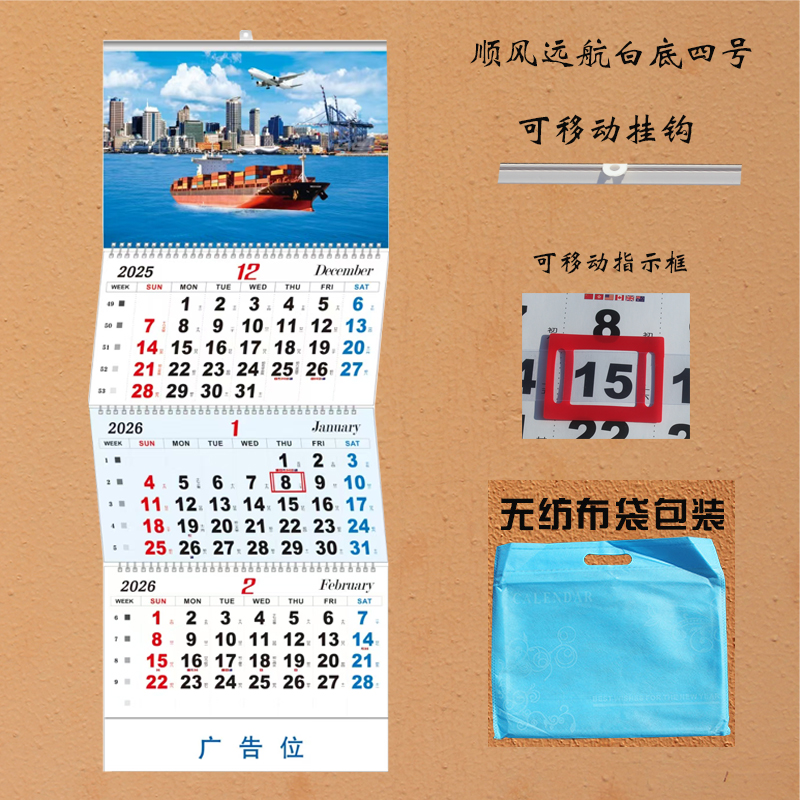 2026年新款挂历航运海运月历同时看三个月带移动指示定制公司logo