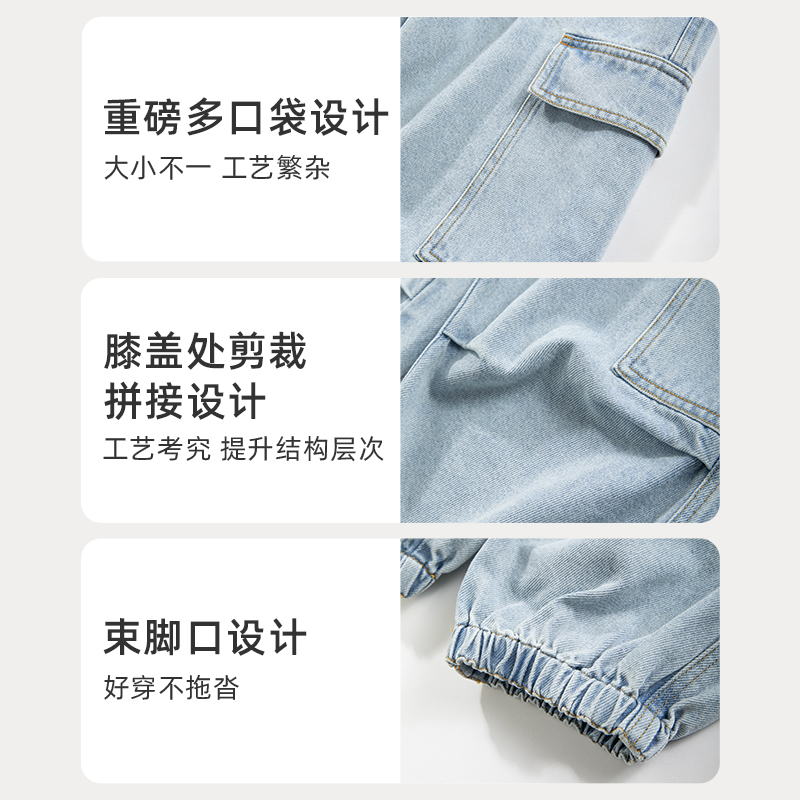 【天丝牛仔】棉叔叔男女儿童工装牛仔裤更柔软更舒适春秋学生裤子