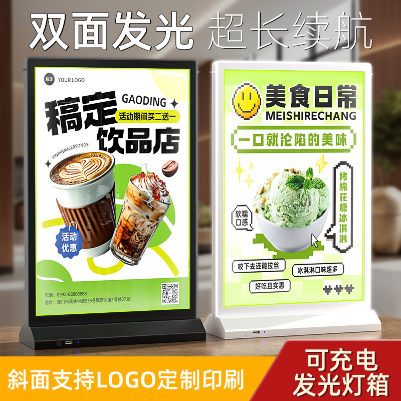 发光展示牌充电灯箱双面台卡餐桌牌价格菜单a4透明卡水牌立式a5桌