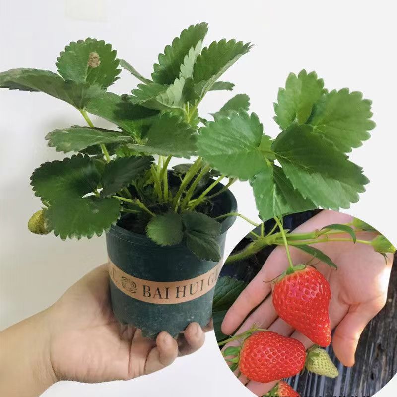 奶油草莓苗盆栽带盆带土种籽子可食用红颜四季结果阳台种植新苗秧