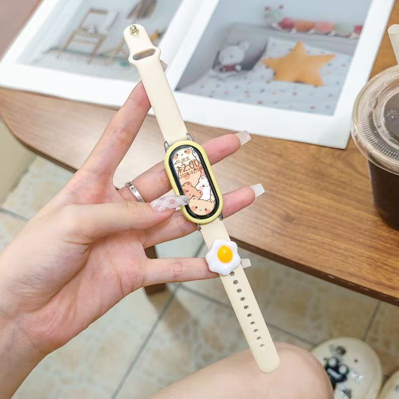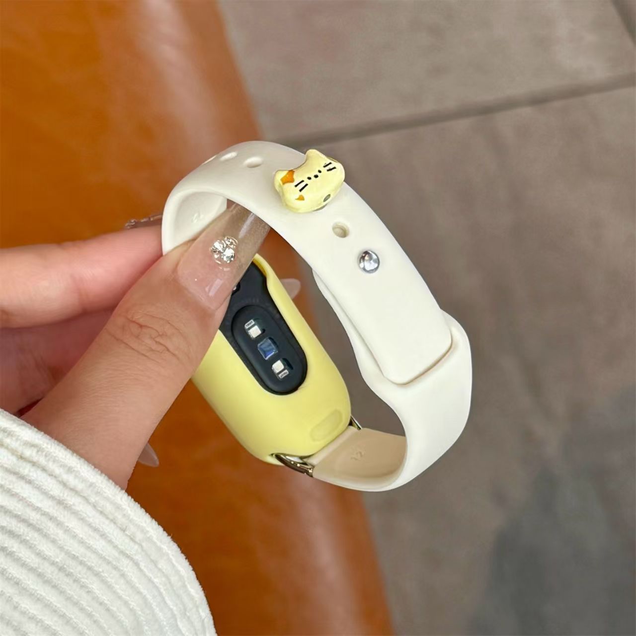 黄色小猫适用小米手环10/9/8表带硅胶7/6/5/4/3/nfc腕带代多巴胺可爱撞色八九十代夏季智能运动手环数码配件