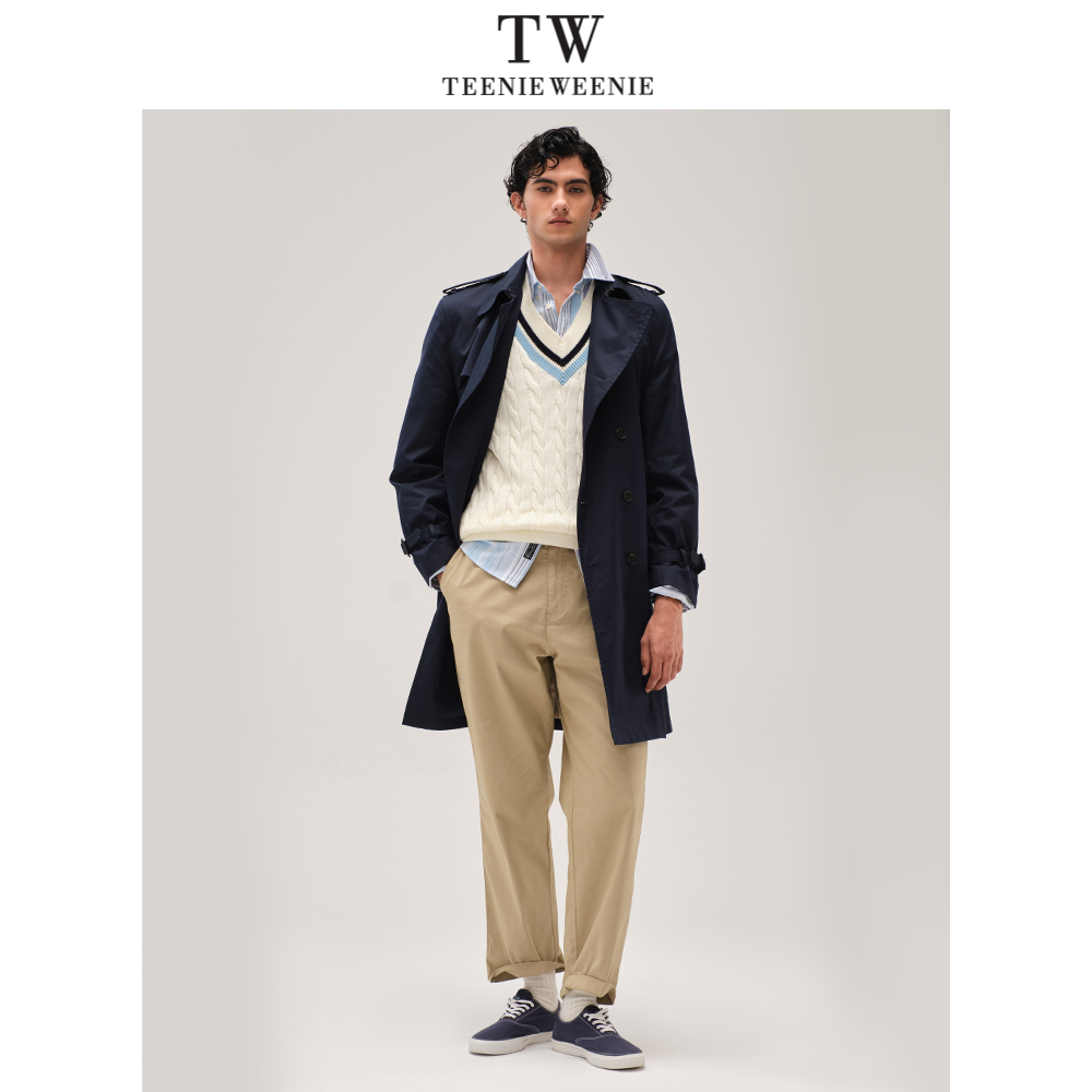 TeenieWeenie小熊男装简约风衣外套新款男士高级翻领中长款复古