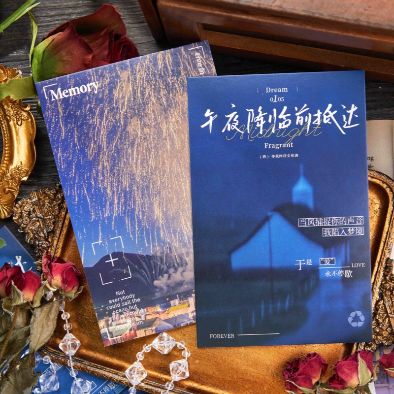 美好文字摄影风景明信片30张午夜降临前抵达系列浪漫情人节墙贴装饰卡片节日礼物贺卡拍照背景道具生日卡