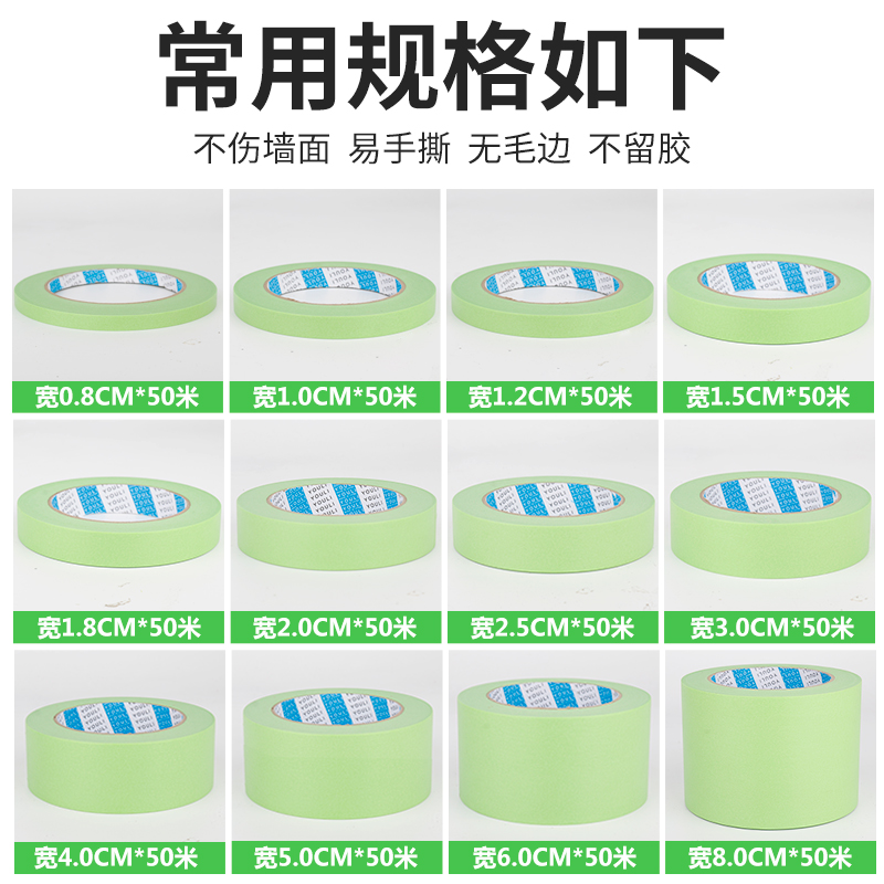弱粘性美纹纸胶带批发整箱刷艺术乳胶漆分色纸低粘度绿色无痕不留胶不伤墙面喷漆遮蔽美缝胶布贴条和纸美纹纸