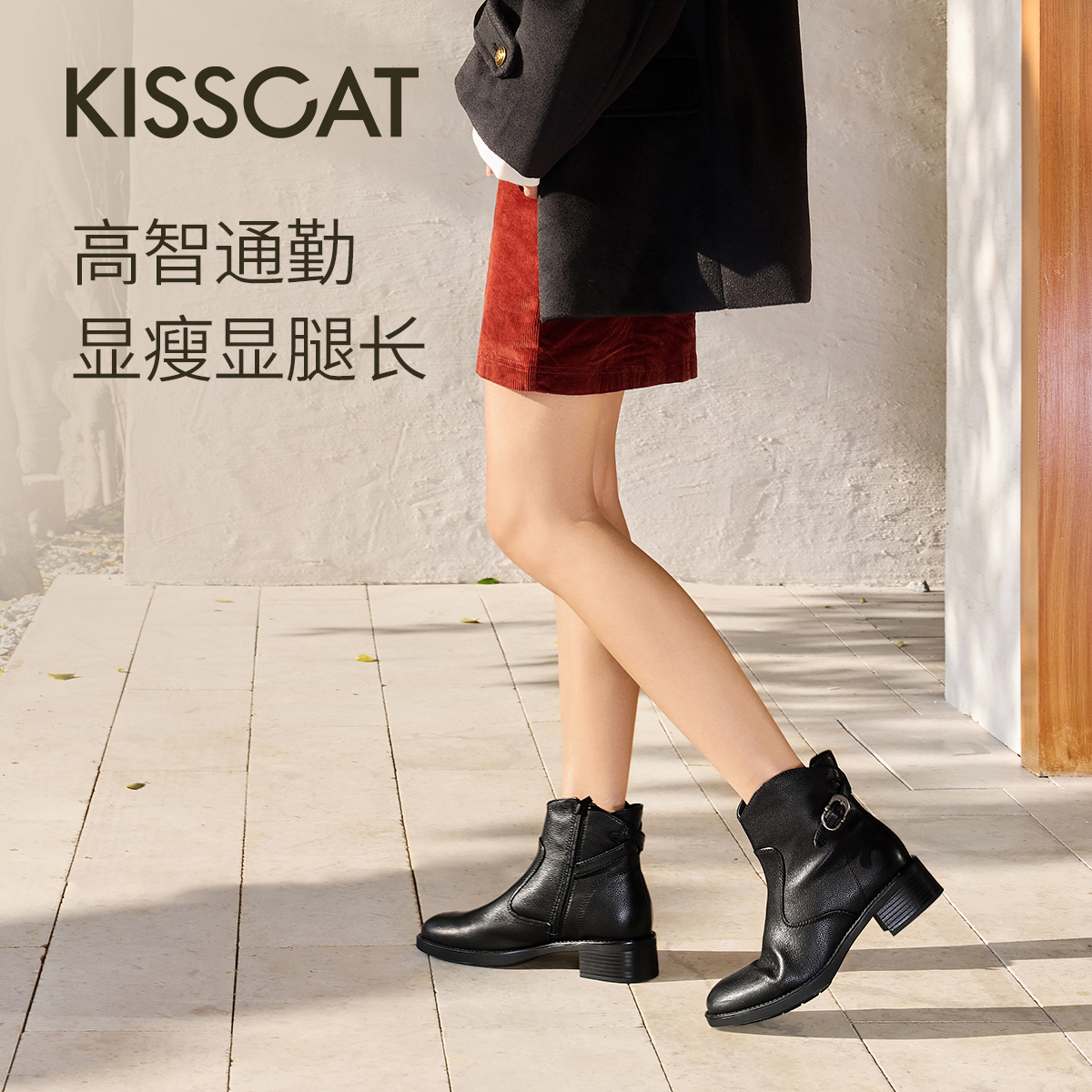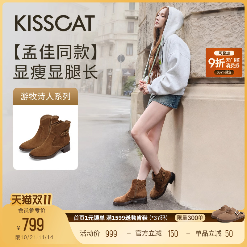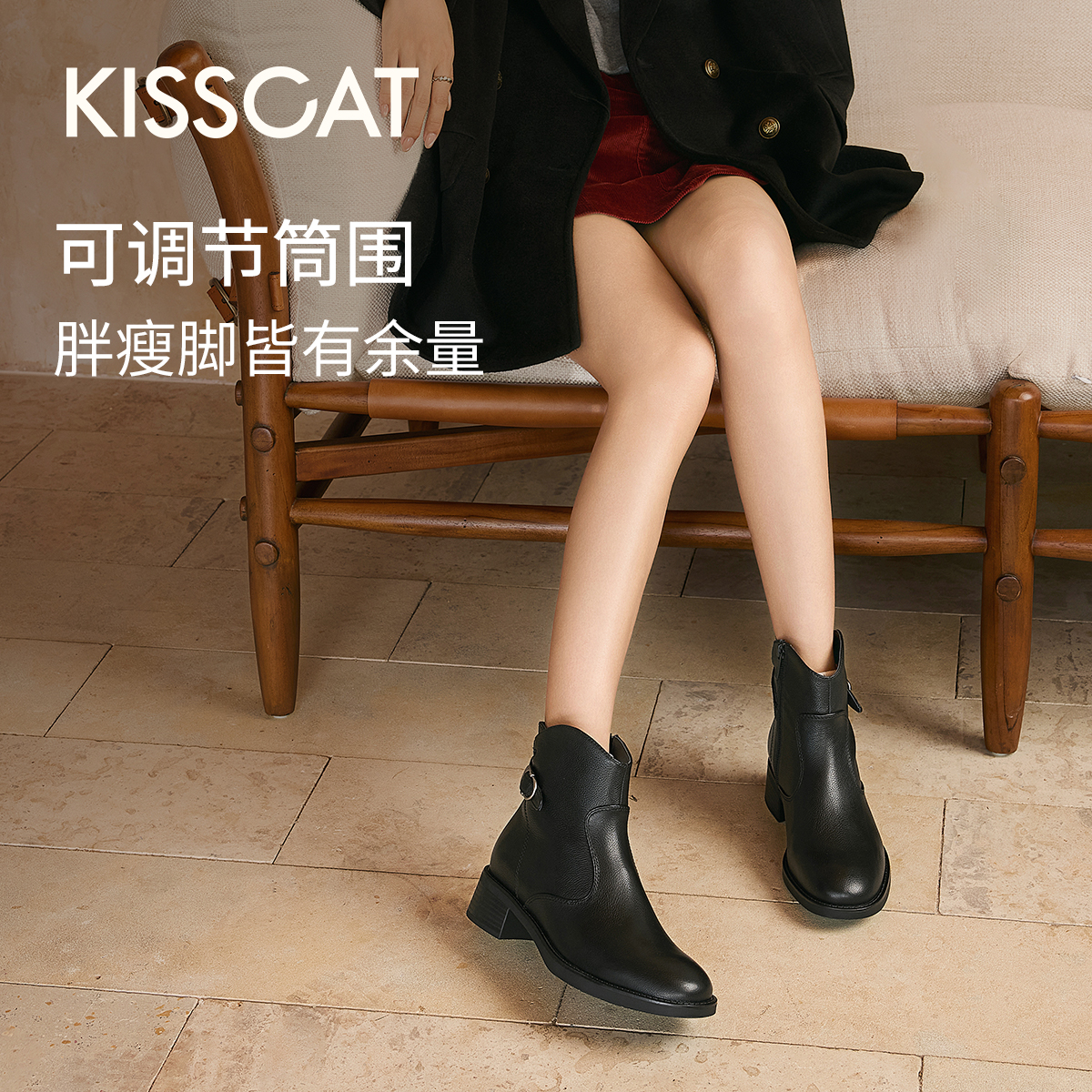 [周也/孟佳同款]接吻猫[游牧诗人]显瘦增高西部靴皮带扣骑士靴女