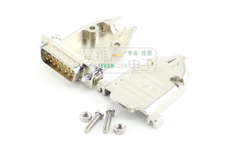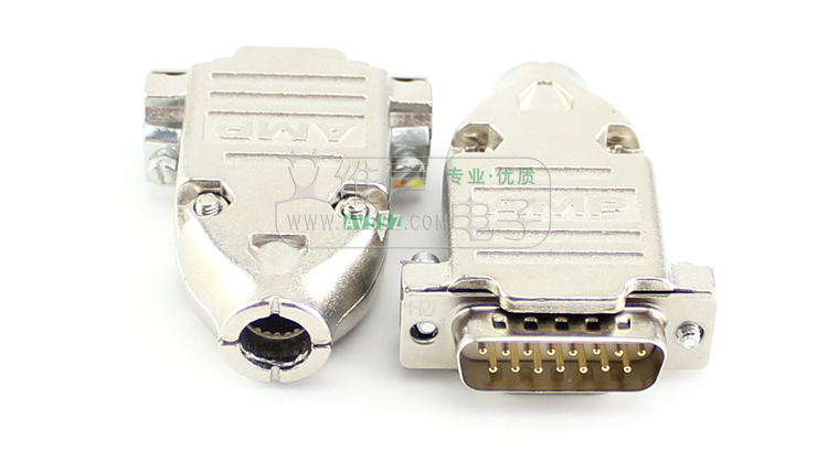高档镀金5麦实芯DB15针焊接插头两排15针公母头COM并口AMP铁壳