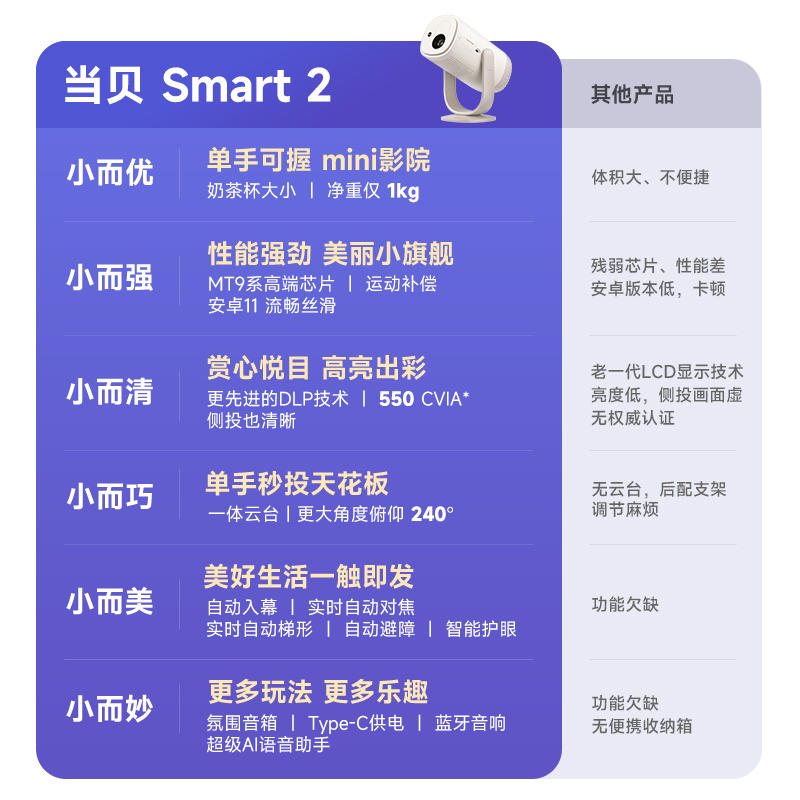 【新品首发 政府补贴立减15%】当贝Smart2投影仪家用超高清轻薄便携智能投影机激光电视卧室