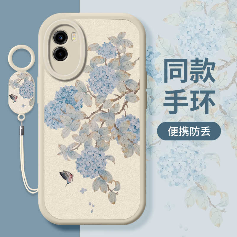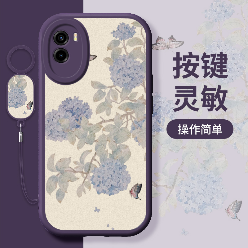 绣球花画适用vivoy55s手机壳y55t新款y53s小羊皮y53t高级y52s简约y52t小清新y51s中国风y50挂牌y50t女保护套