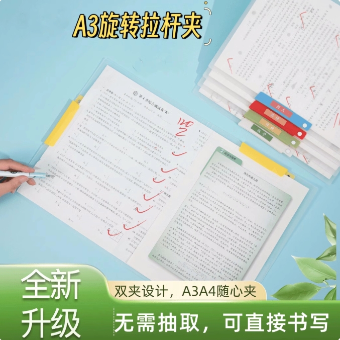 【下单立减50】A3双拉杆试卷夹旋转拉杆夹收纳册抽杆文件夹F