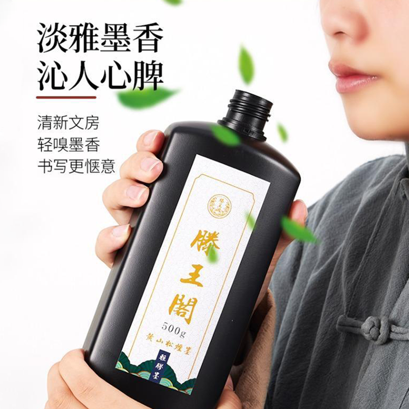 滕王阁·黄山松烟墨墨汁书法作品专用500g淡雅墨香沁人心脾创作佳品宜书宜画不泅墨不透纸胡麻油烟墨文房四宝