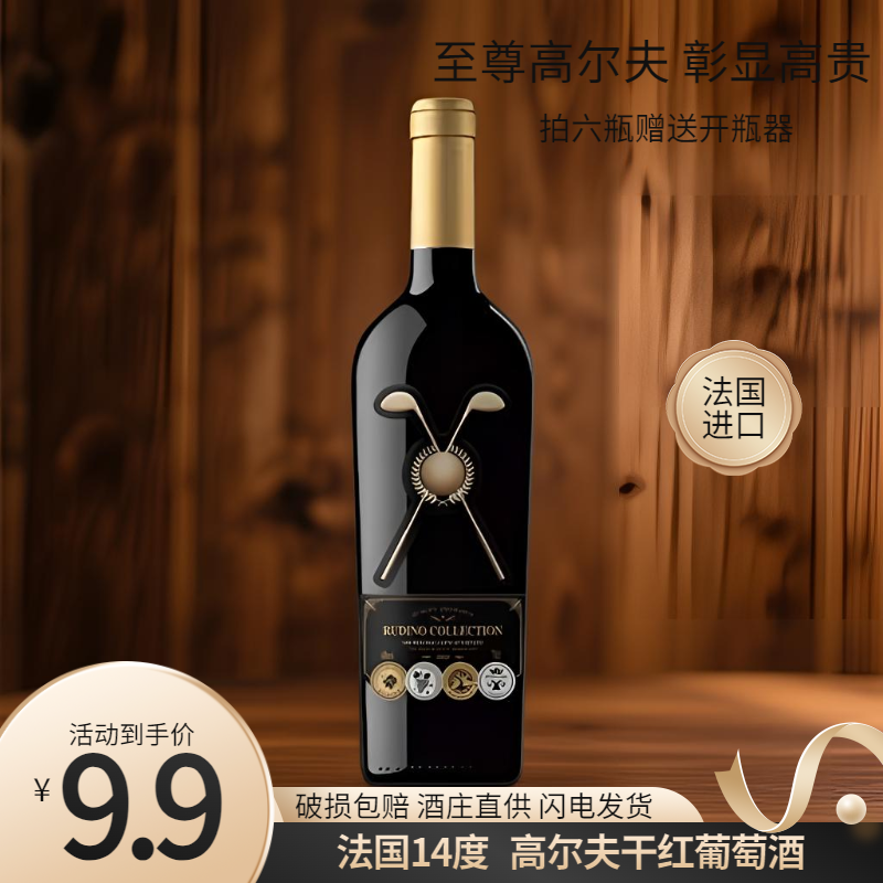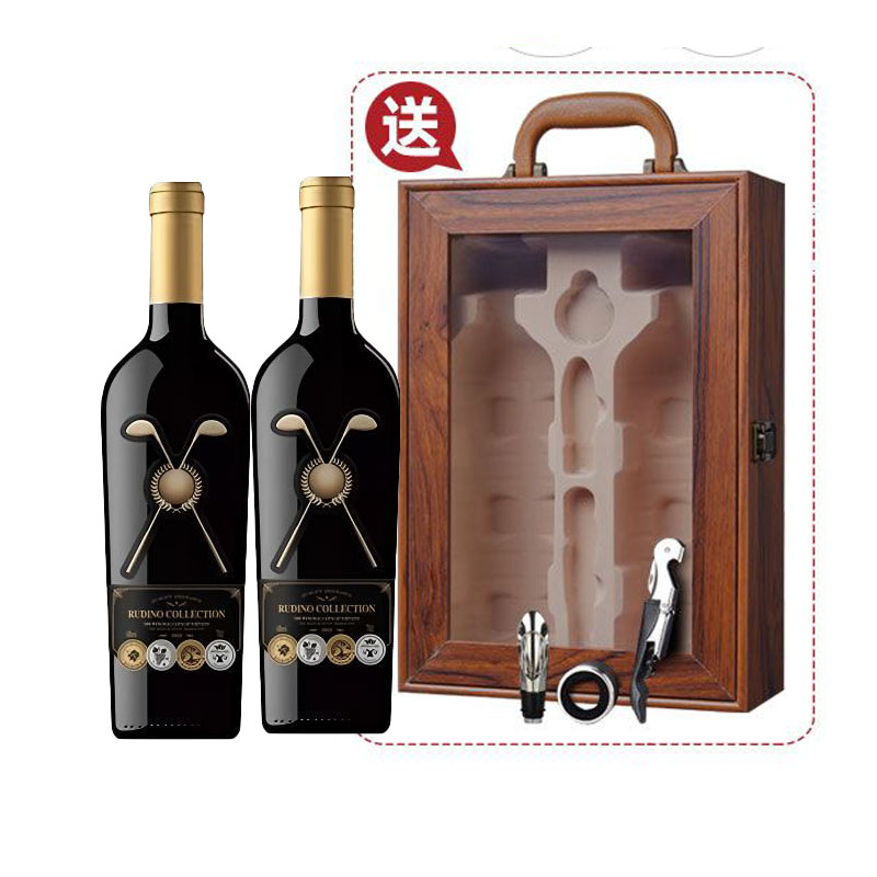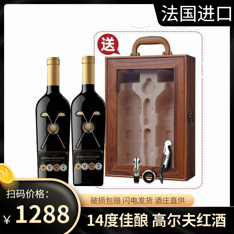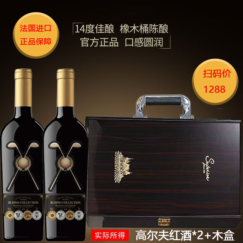 法国进口14度高尔夫干红葡萄酒双支木礼盒装节庆送礼 宴请红酒