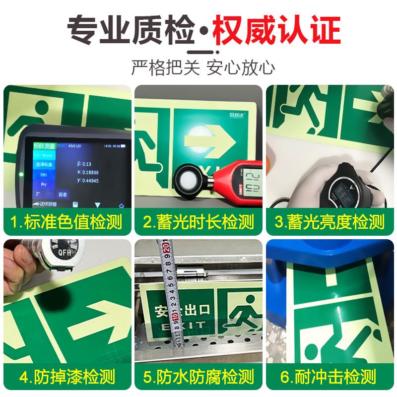 3C认证安全出口地贴夜光直行左转消防通道标识标牌箭头指示牌疏散逃生荧光免接电应急通道标志警示牌自发光贴
