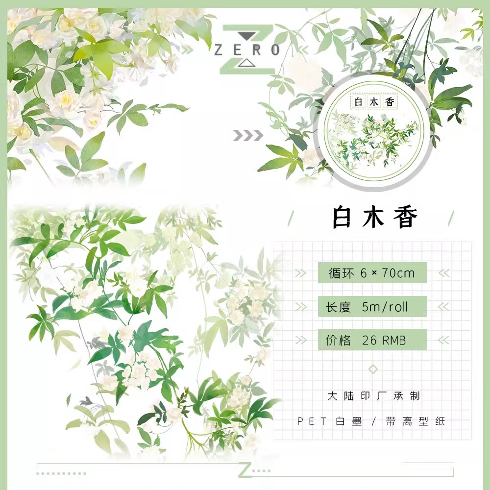 ZERO原创#植物合集白木香紫藤洋槐树花枝和纸胶带手帐古风造景