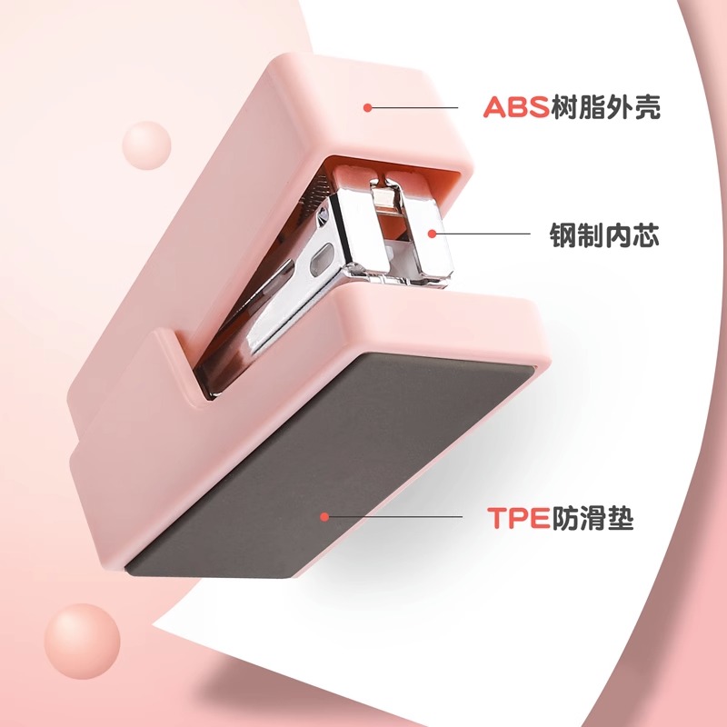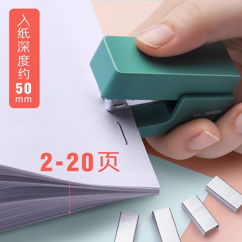得力订书机学生用迷你小号订书机起钉器便携式办公用手握式省力订书器小巧多功能家用可爱抹苔绿清雾粉