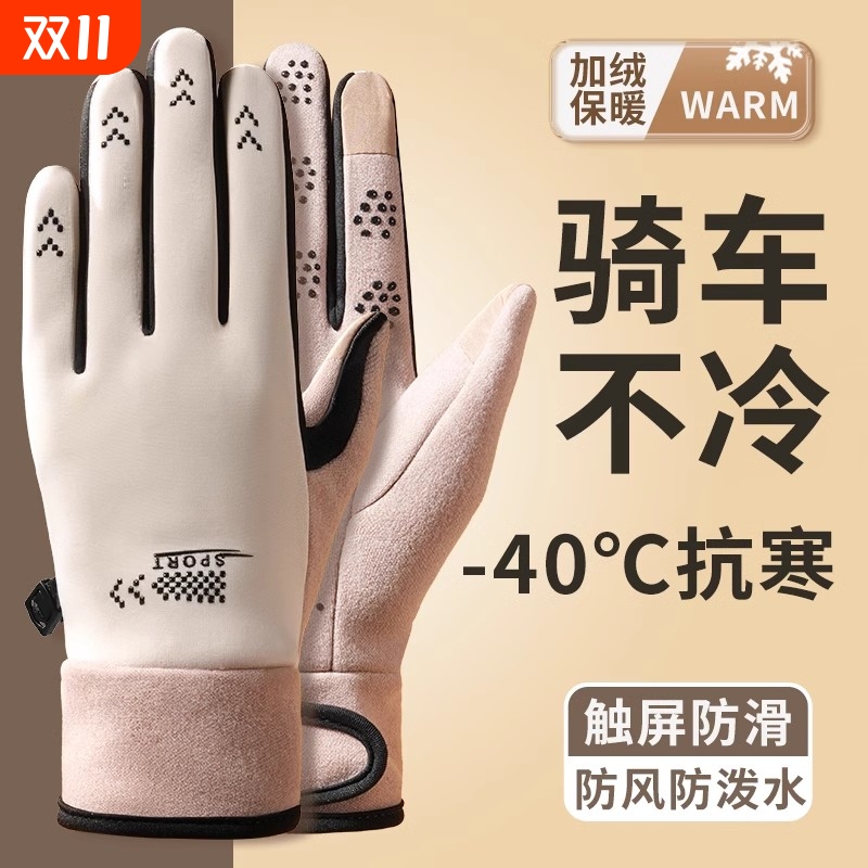 手套女秋冬季2025触屏加绒加厚滑雪电动车保暖冬天骑行男防水骑车