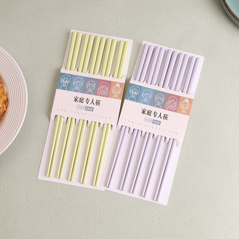 耐高温合金筷子家用高档不发霉5色分人一人一筷防滑快子颜色专人
