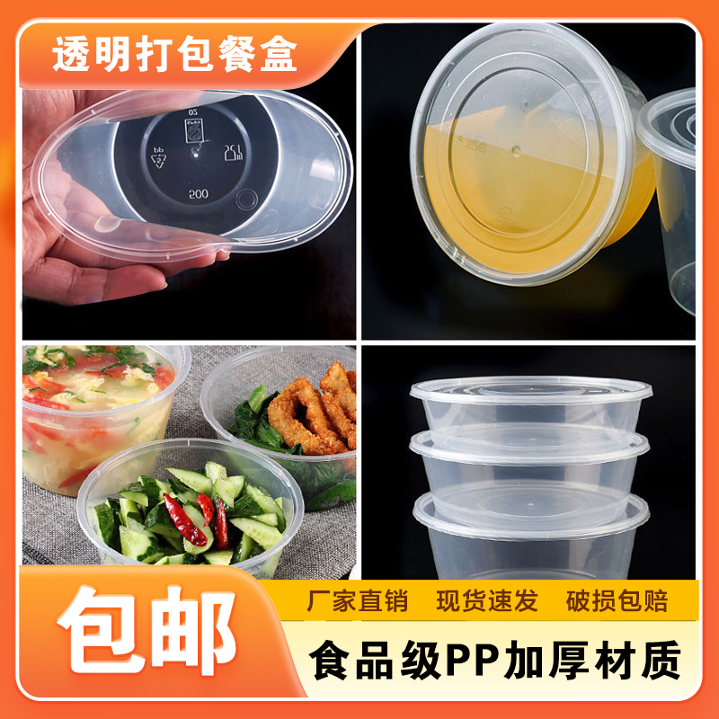一次性碗塑料家用小碗套装圆形带盖饭盒打包餐盒餐具冰粉商用碗筷