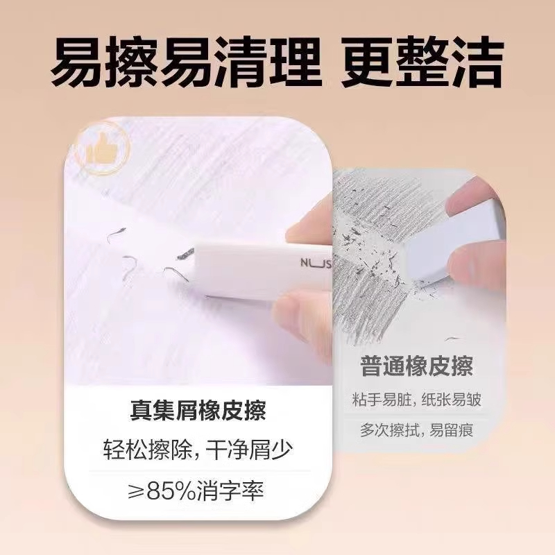 橡皮真集屑三角橡皮擦少屑小学生初中生专用擦字成线擦拭成条干净不留痕2B橡皮儿童幼儿园素描美术答题橡皮擦