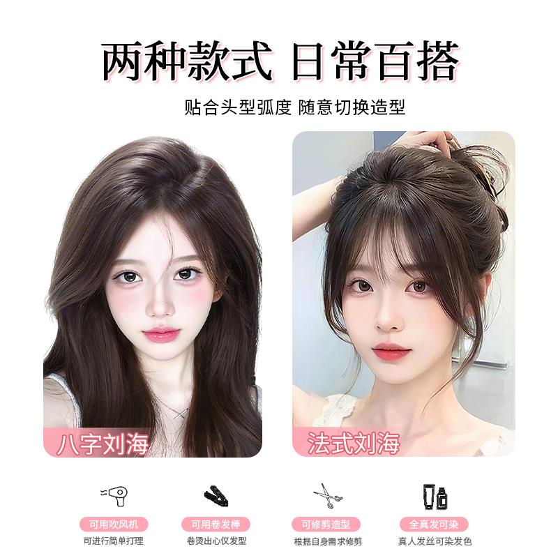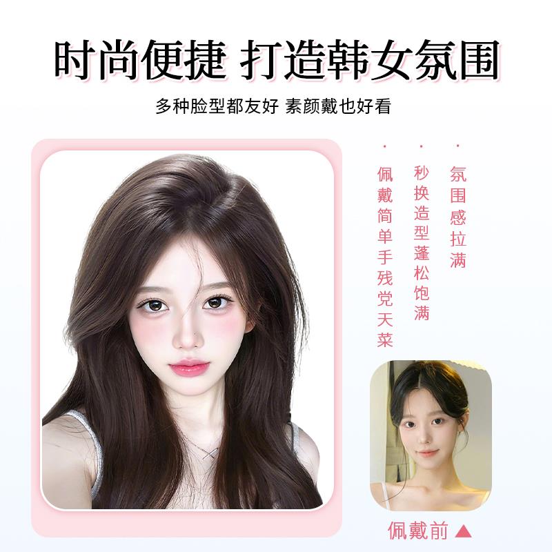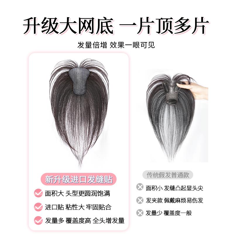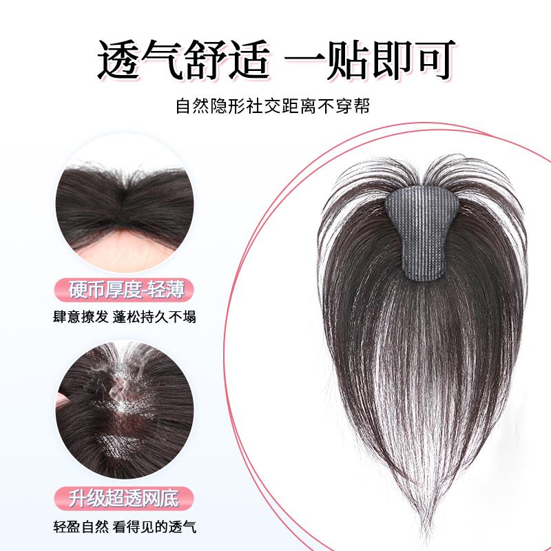 【无需发卡】假发女片头顶补发遮白发增发量轻薄真发假刘海魔术贴