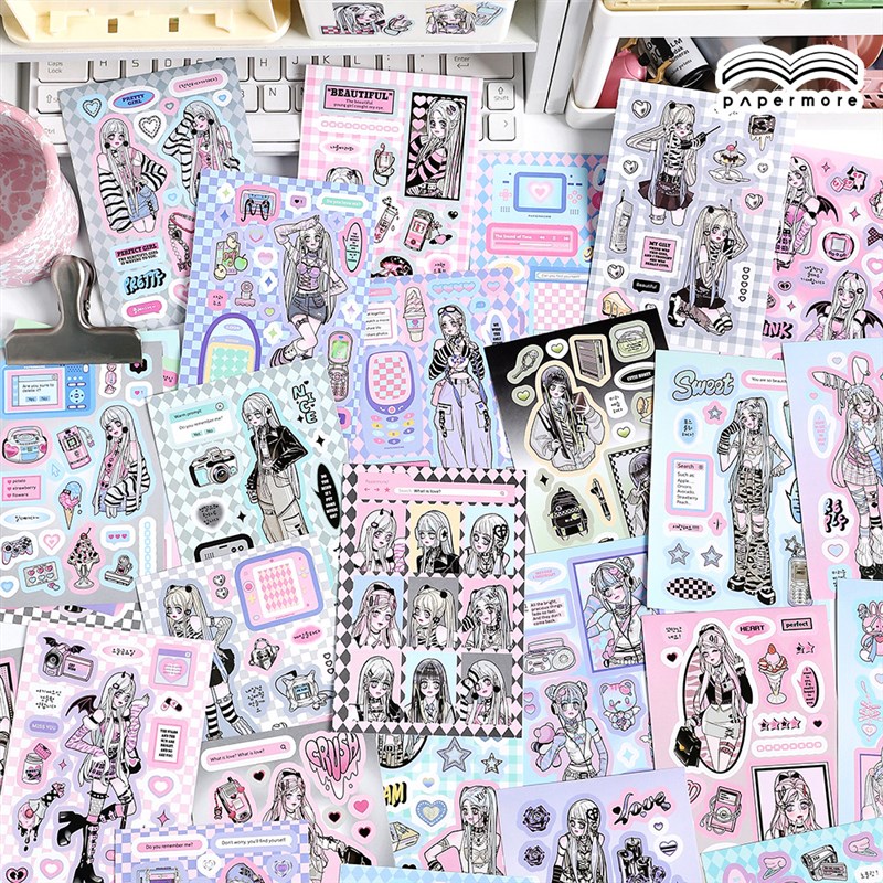 幻想症少女手账贴纸本可爱女孩爱心盐系咕卡手帐拼贴装饰素材贴画