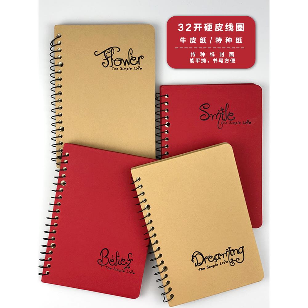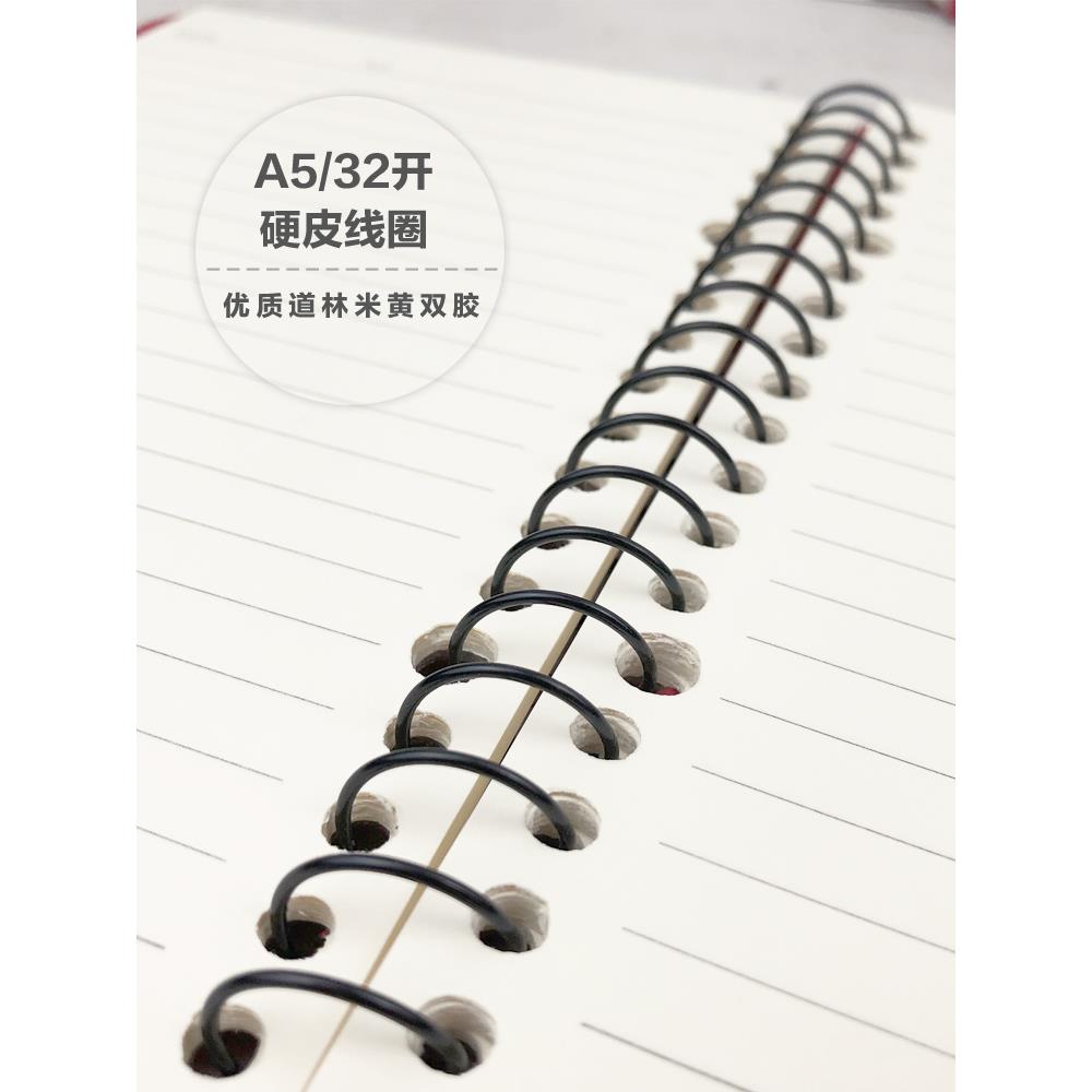 a5硬皮牛皮封面线圈本32开笔记横线内页学生日记办公会议平摊简约