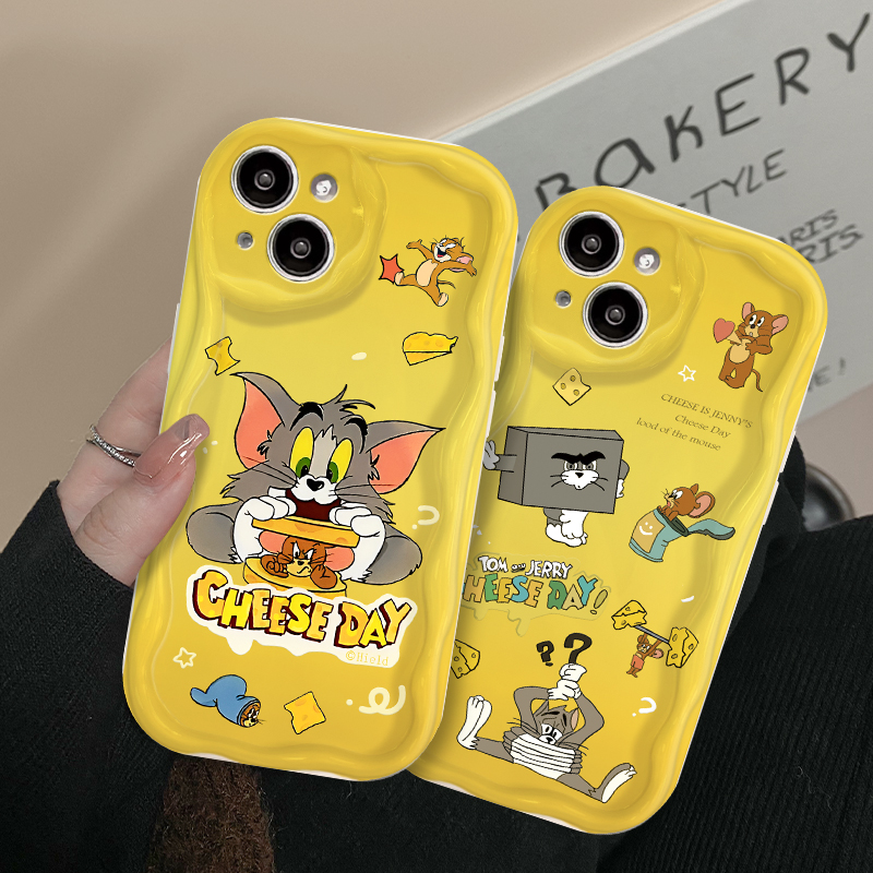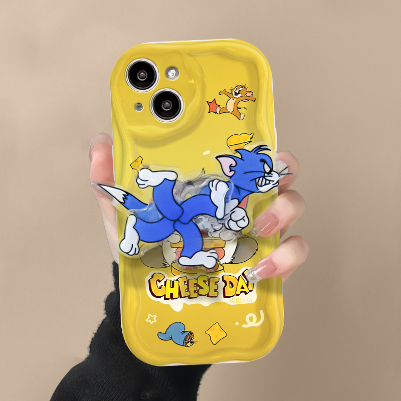 适用苹果13手机壳16新女款iPhone15promax/14奶油纹11/12mini猫和老鼠旋转支架xs/xr硅胶8/7plus防摔6s保护套