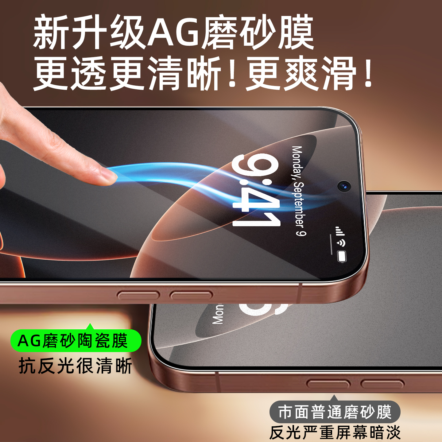 图拉斯无界膜AR抗反射适用苹果17钢化膜iPhone17promax手机贴膜16pro无黑边防摔保护15屏幕无尘仓ip防指纹ar