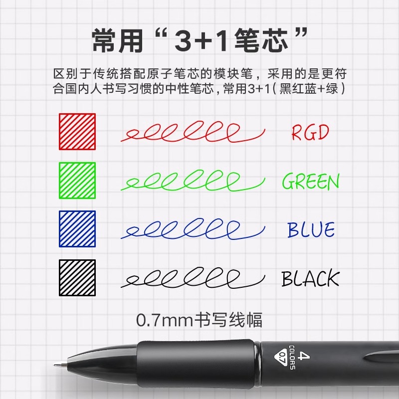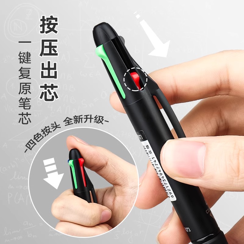 得力多色圆珠笔四色油笔彩色原子笔蓝色多功能做笔记专用黑蓝红色油性按压式四合一多颜色一体笔中油笔中性笔