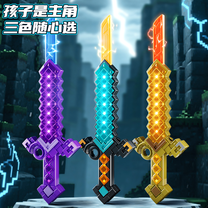 我的世界钻石剑像素武器儿童伸缩激光宝剑发光玩具男孩子生日礼物