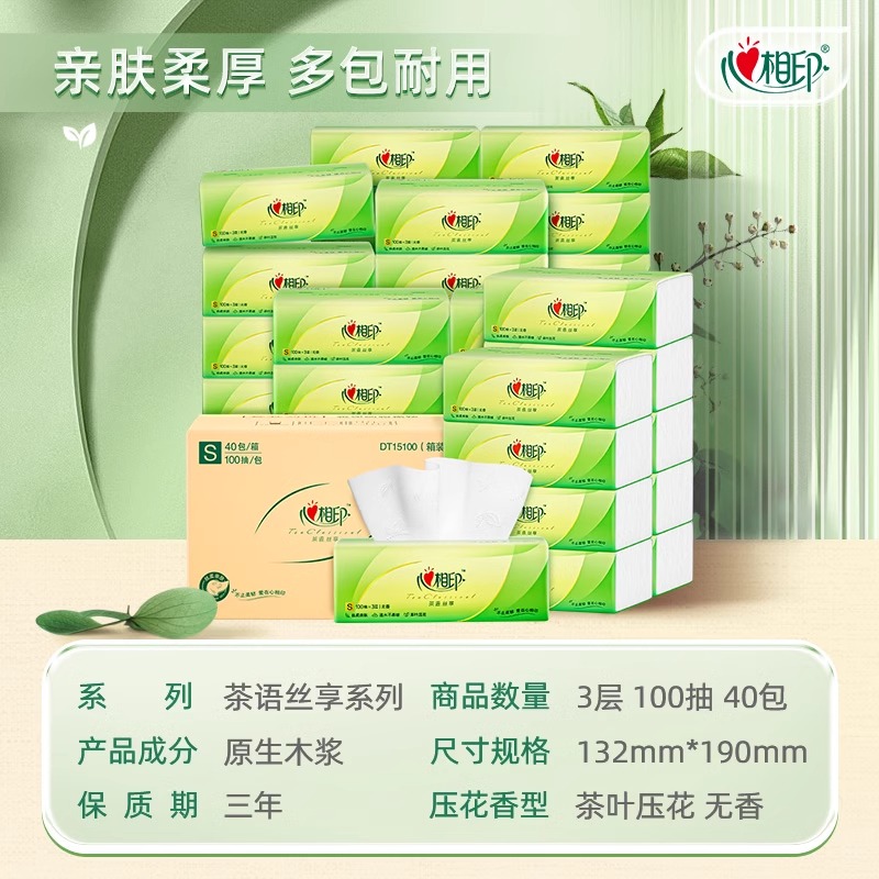 【爆卖100万+】心相印茶香抽纸纸巾家用实惠装抽纸整箱100抽24包