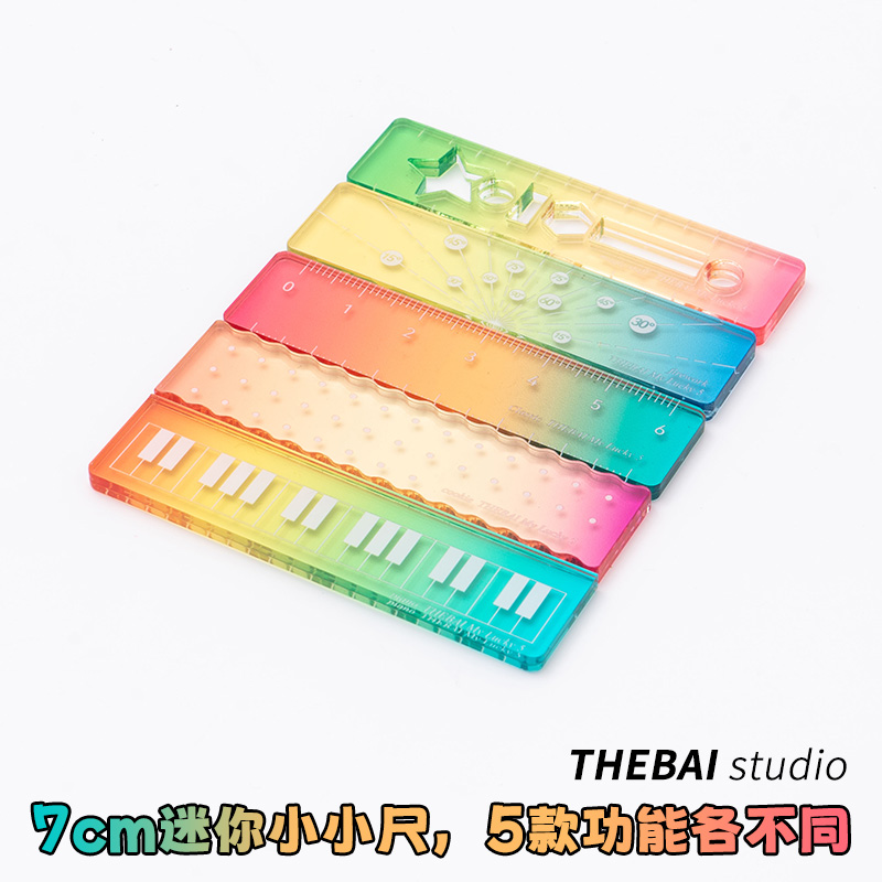 THEBAI多功能迷你掌心尺糖果色限定手账用透明波浪直尺子套装败家