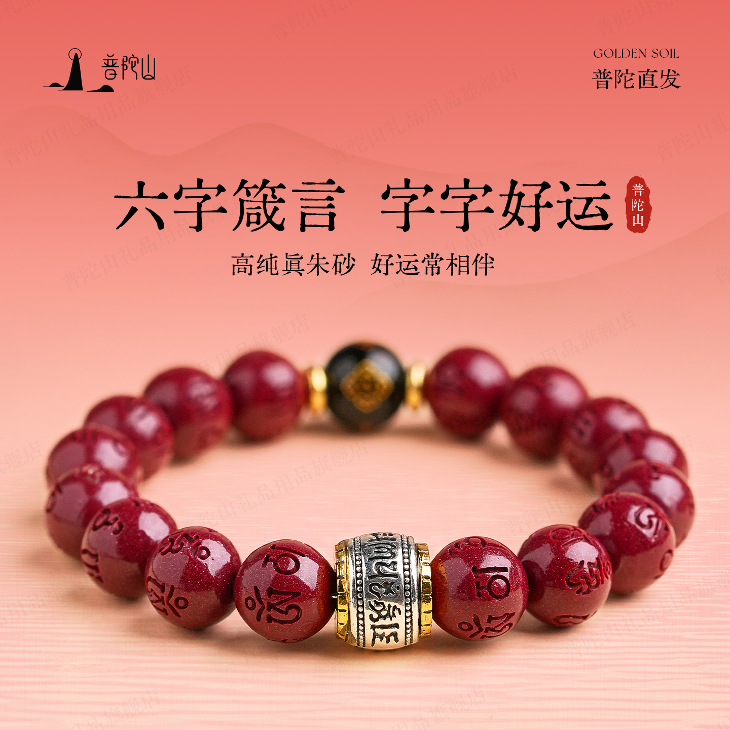 普陀山朱砂手串珠蛇年手链本命年普贤护身手镯官方旗舰店正品
