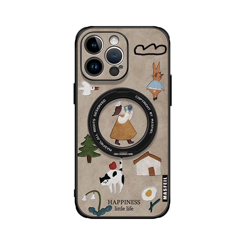 MASFEIL × 插画摄影适用苹果17Promax手机壳新款ip15磁吸带支架iPhone16Pro保护套支点Ho5复古13pm全包14