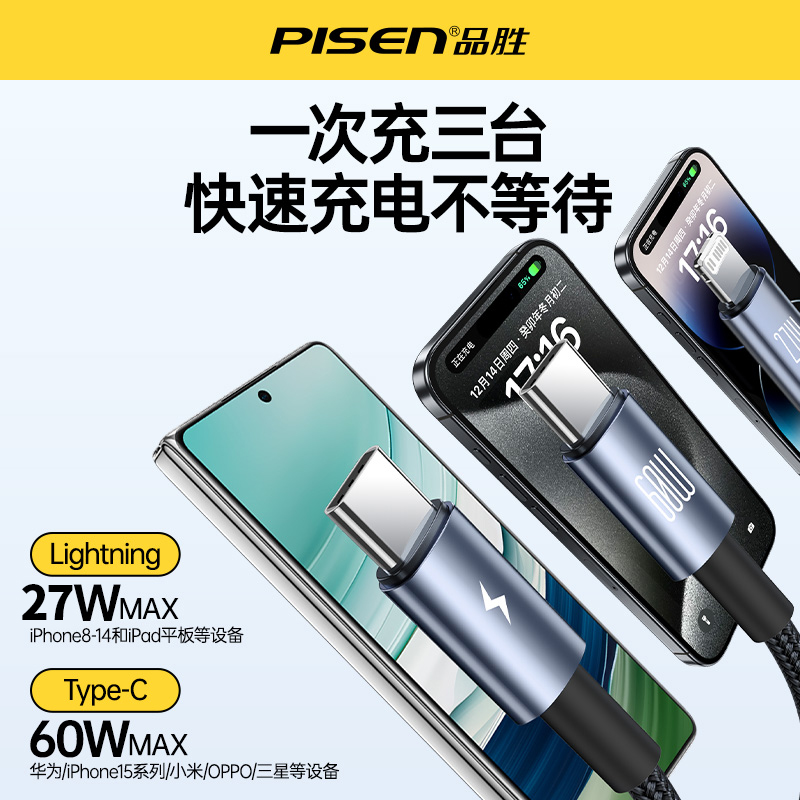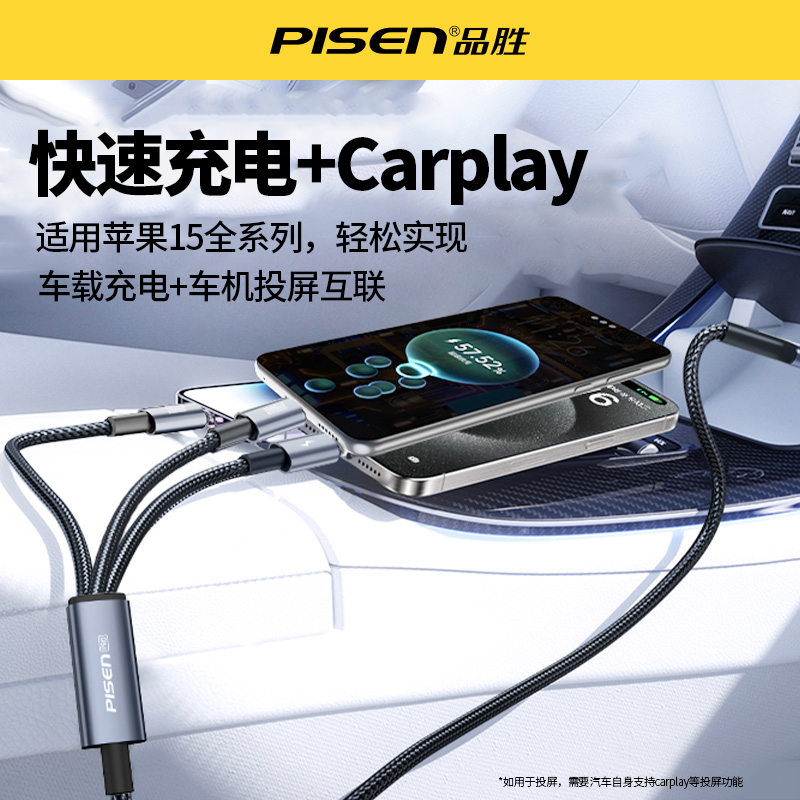 品胜适用华为苹果usbc充电器pd快充一拖三充电线两个typec三合一安卓tpyec口车载tepyc数据线tapyc手机三个头