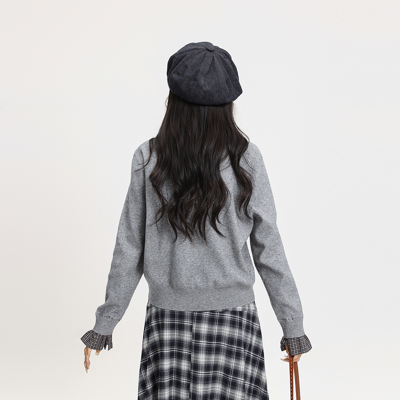 记忆的起点开衫毛衣2025冬季新款简约翻领拼接针织衫女69AD51555